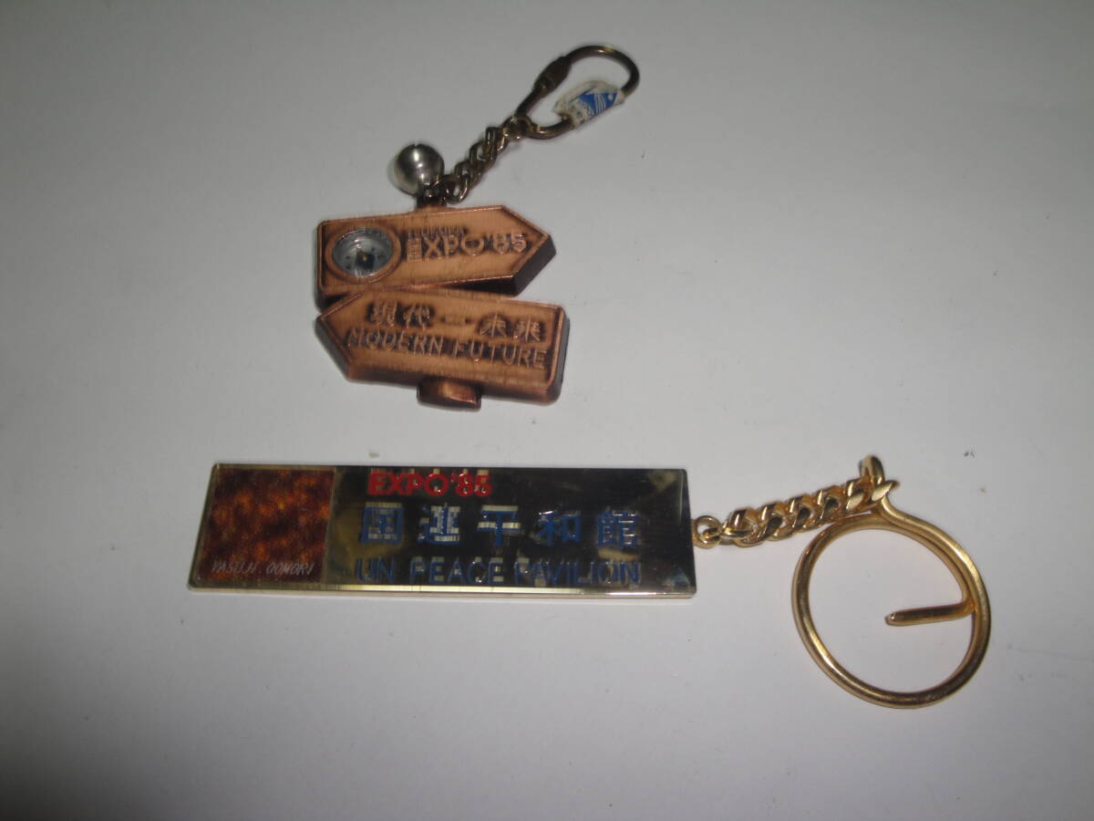 ☆”TSUKUBA EXPO'85《磁石付・現代ー未来キーホルダー&国連平和館キーホルダー》☆送料180円 茨城県 つくば市 星丸くん 収集趣味