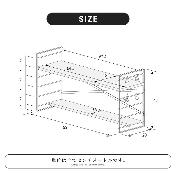 | [棚板(上)]幅62.4×奥行18cm [棚板(下)]幅62.4×奥行9.5cm |