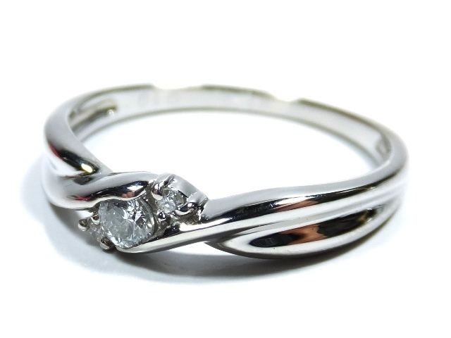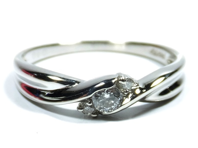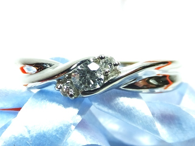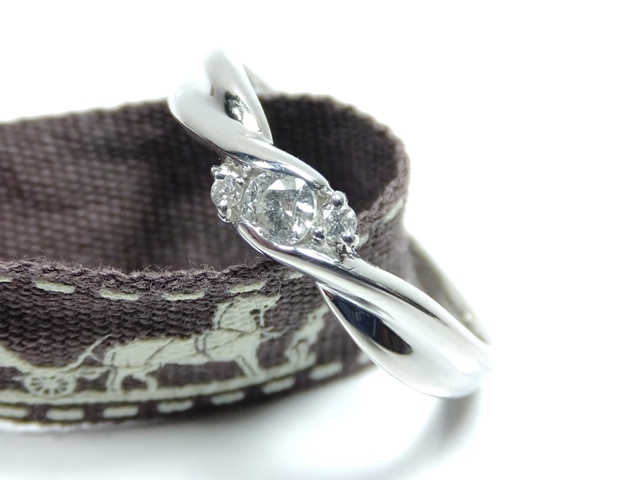 Pt プラチナ シンプルなデザイン、中心に、大小 3石の ダイヤモンド ダイヤ両サイドの、ツイスト模様がアクセント、デイリー着けしやすい 素敵なデザイン。 | |||