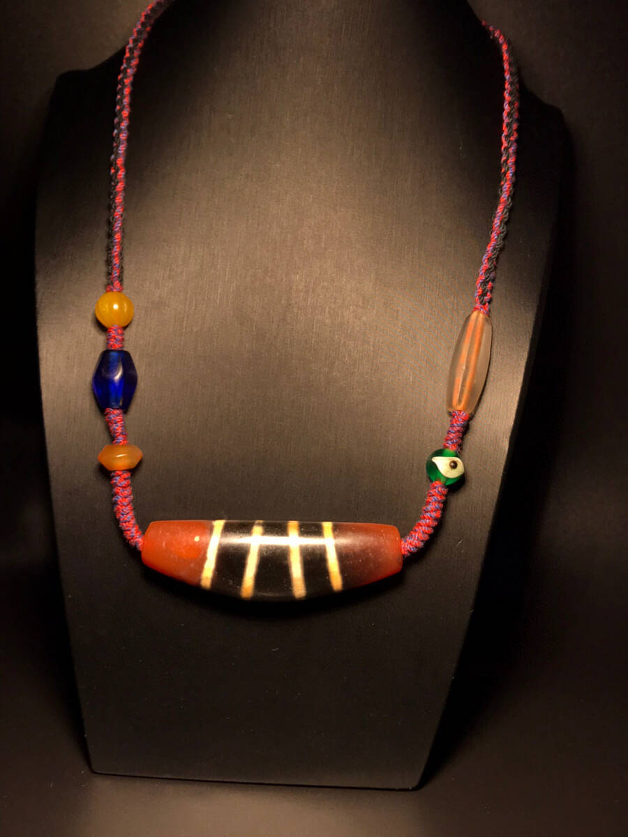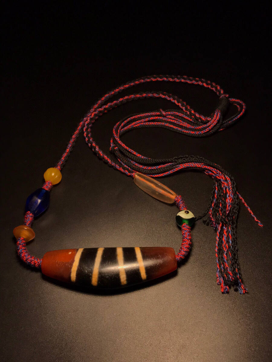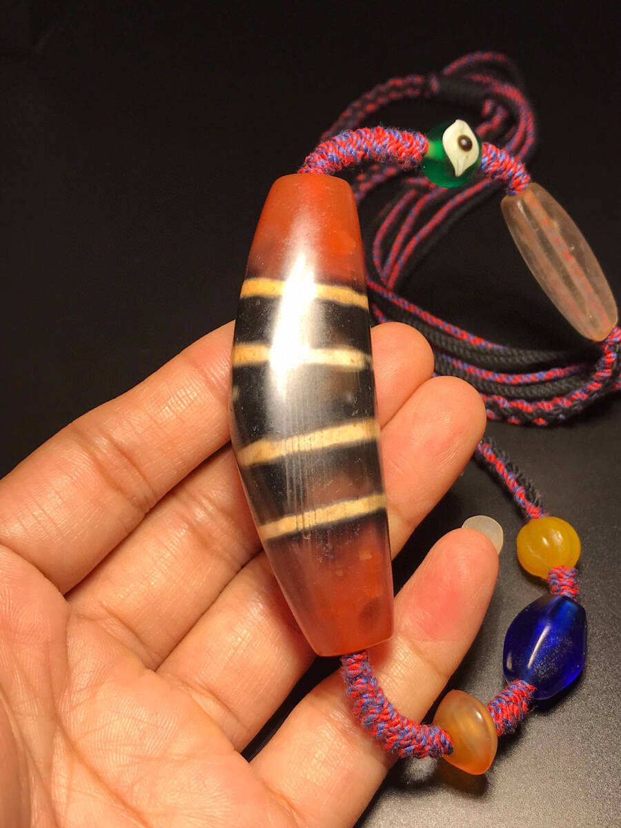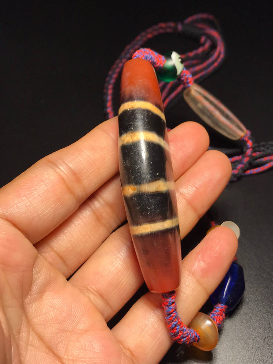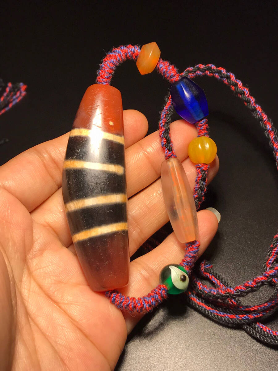 【超珍館蔵】瑪瑙製 細密彫 三色牛角線珠鎖骨ネックレス 置物 古賞物 古美術品 稀少珍蔵品