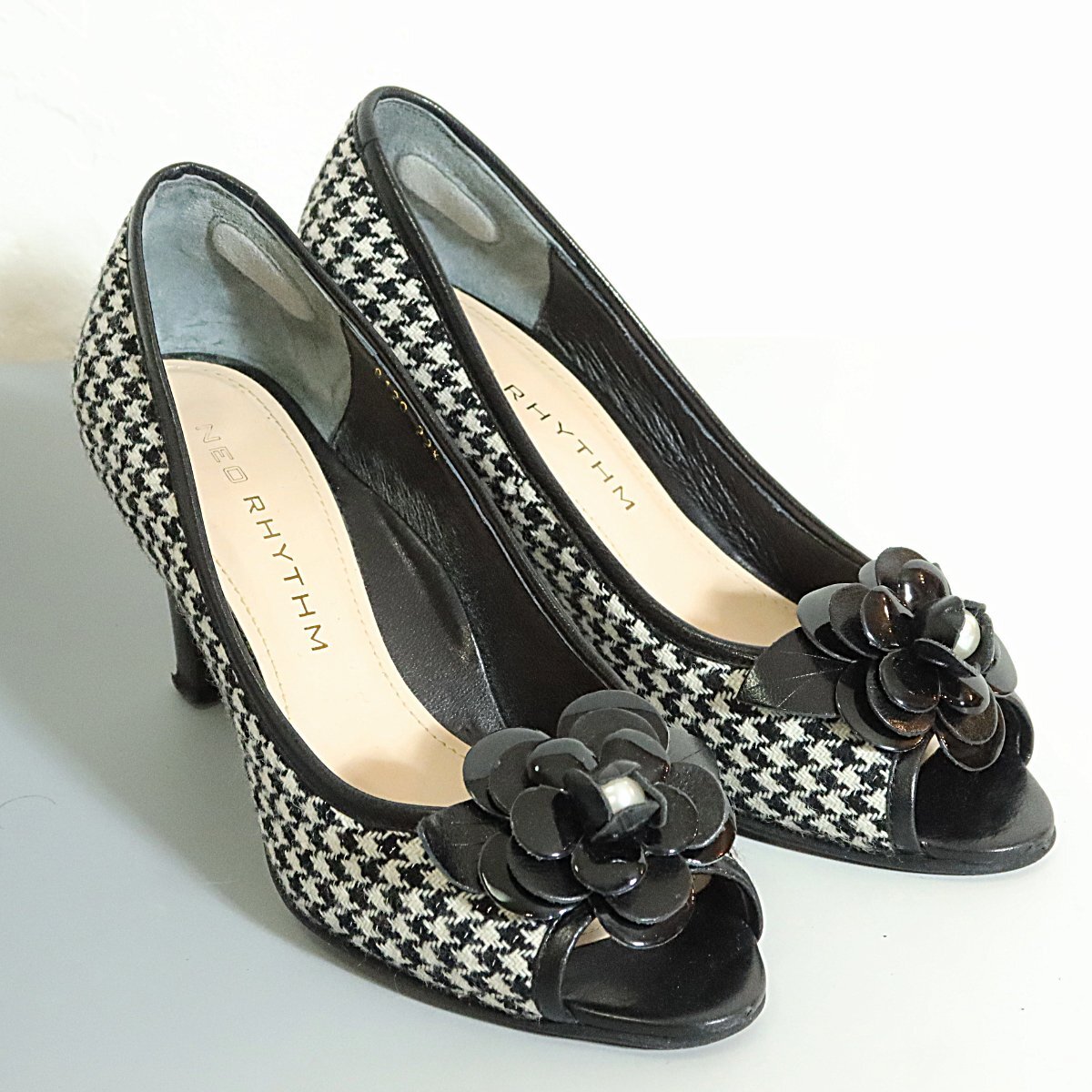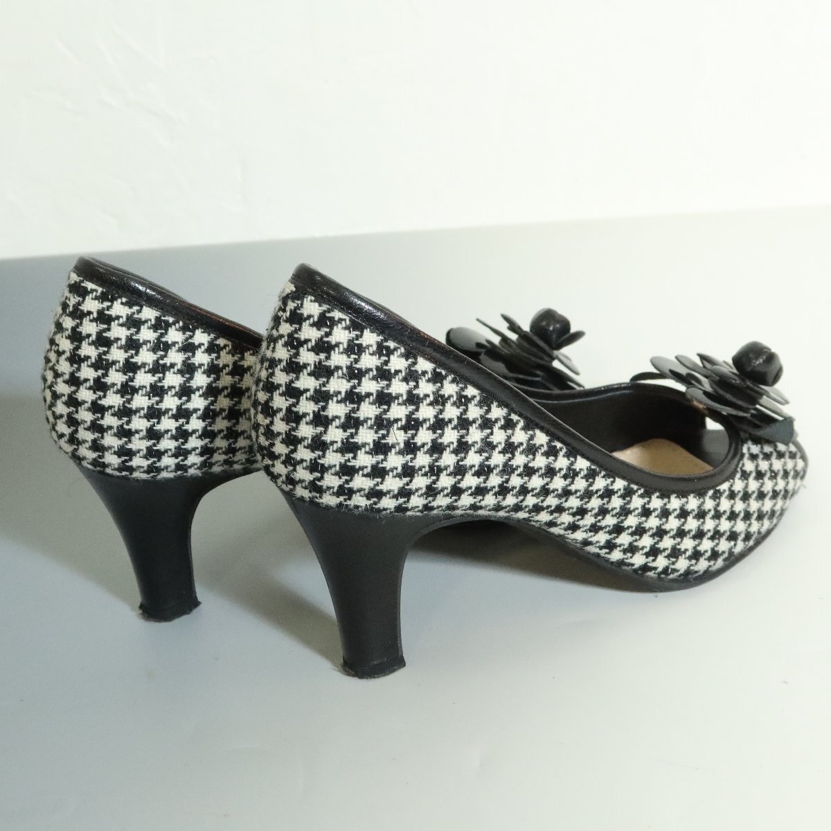 ネオリズム★パンプス オープントゥ サイズ22.5cmEE 黒×白系 千鳥格子 k3285