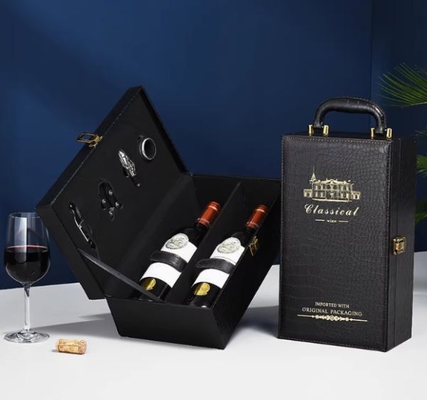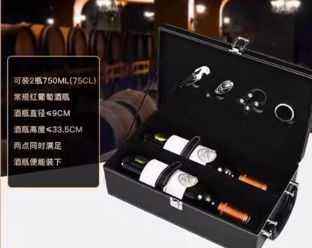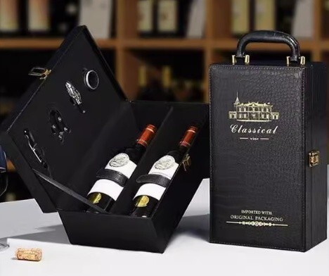 【夜のお店に/ご自宅に】ワイン/シャンパン用 インハンドバッグ ブルレザーボックスワイン 包装 ボックスギフト ボトルワイン 2 本0807⑥