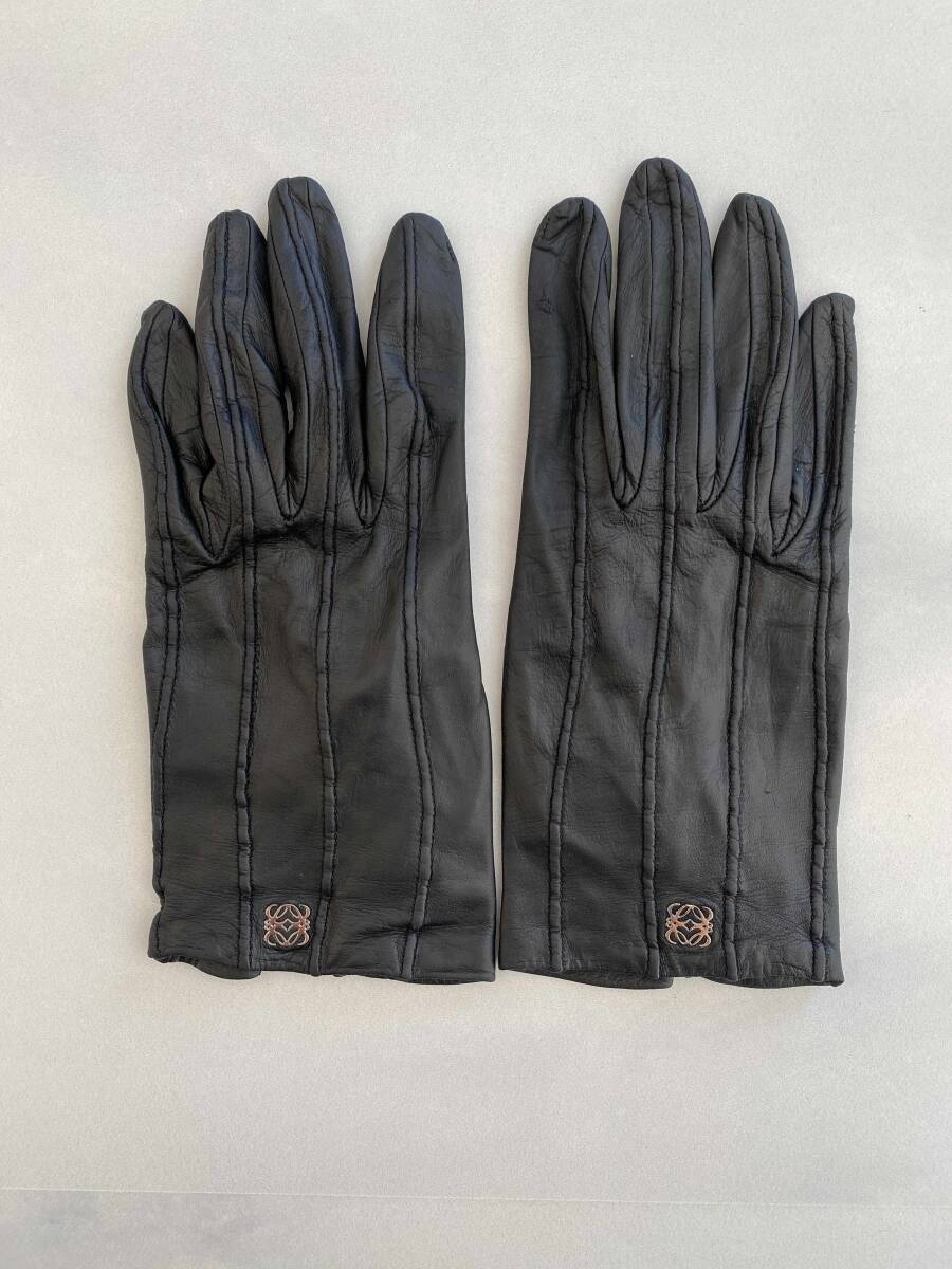 【ユーズド】LOEWE ロエベ レディースサイズ レザーグローブ ブラック 黒革手袋 シルク裏地 サイズ6ハーフ