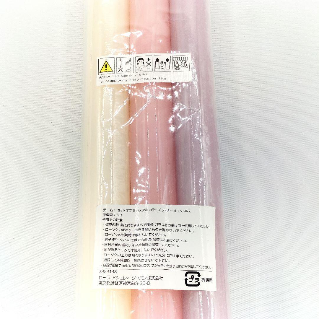 ■ローラアシュレイ パステルカラーズ ディナーキャンドルズ 6P