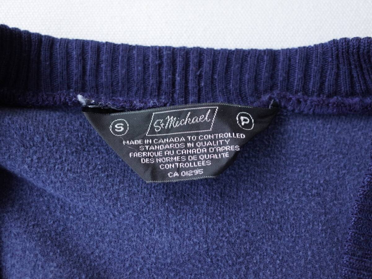 80's ビンテージ St Michael ベロアトップス Vネック トレーナー ネイビーブルー系色 ユニセックス USA古着