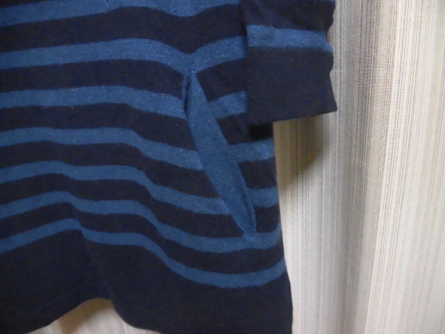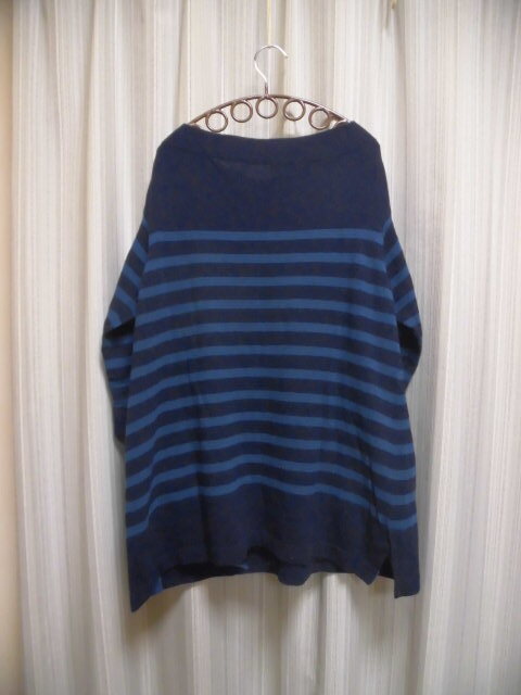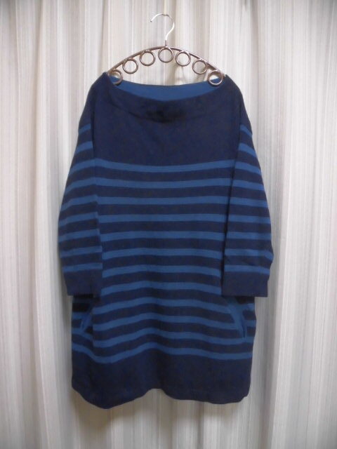TANG!★ウール ブレンド ボートネック 七分袖 セーター★チュニック★レディース 38サイズ★ ネイビー×ブルー ボーダー★タング