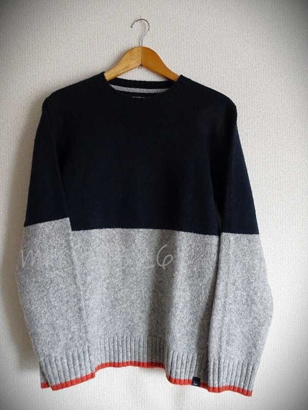 ☆ ニット セーター イギリス 古着 メンズ おしゃれ 輸入 入手困難 希少 グレー ネイビー オレンジ M L 男性用 毛玉あり 訳あり 難あり