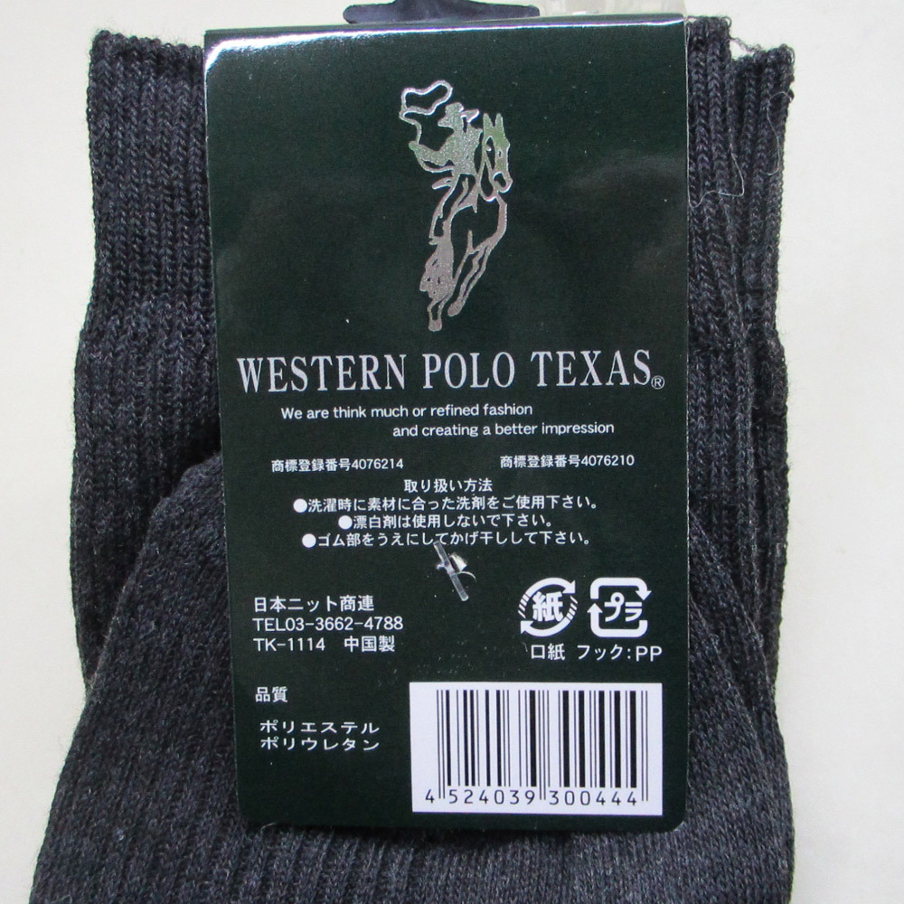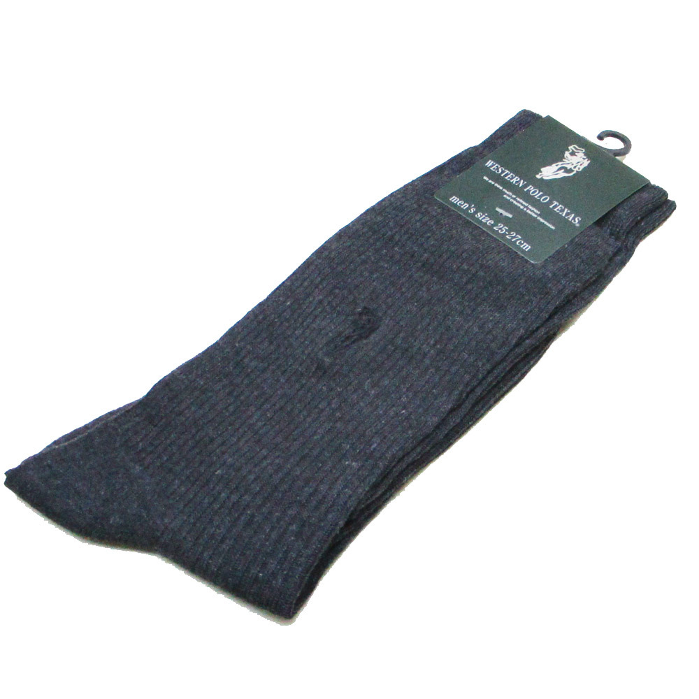 WESTERN POLO TEXAS ポロ 紳士 ワンポイント刺繍ソックス 靴下 25-27cm ダークグレイx4足セット/卸/送料無料メール便