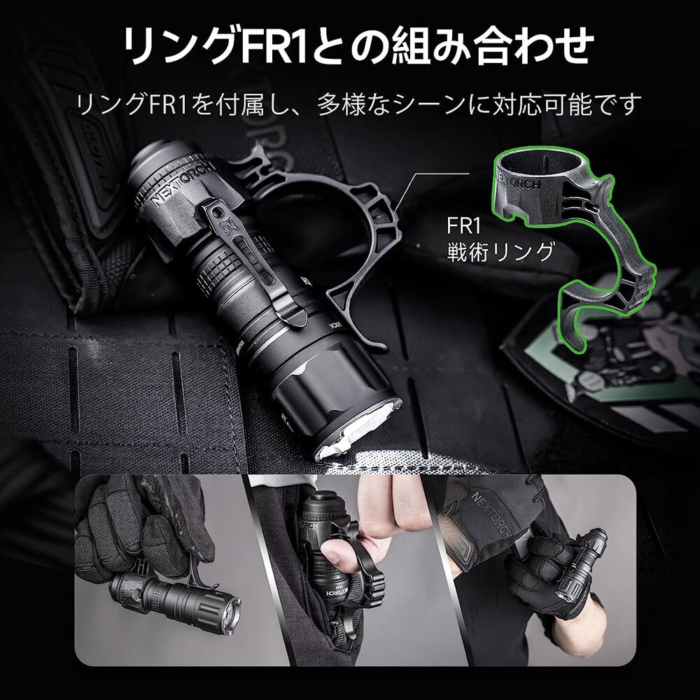 NEXTORCHのタクティカルリング、FR-1が付属します。外した状態でも使用可能です。