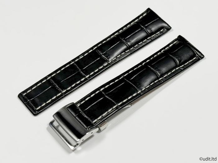 ラグ幅22mm ブライトリング対応 腕時計レザーベルト ブラック 時計用バンド スーパーオーシャン クロノマット ナビタイマー 等に