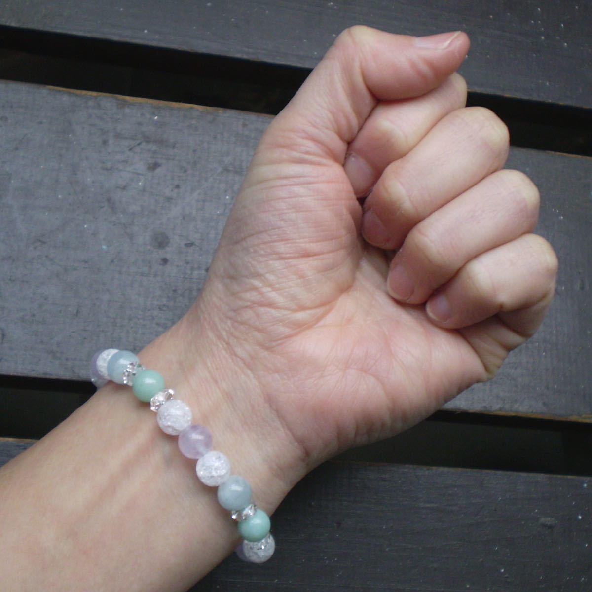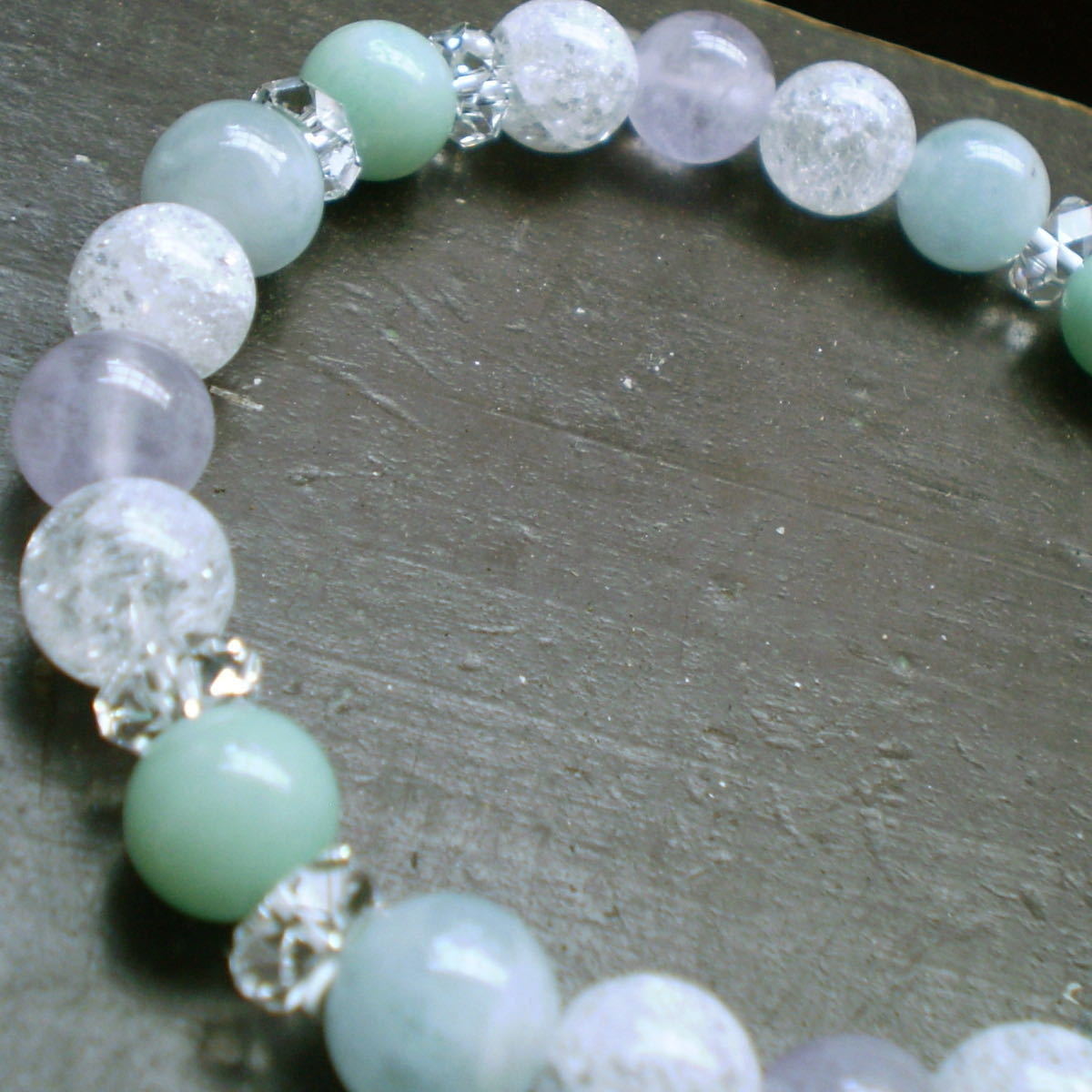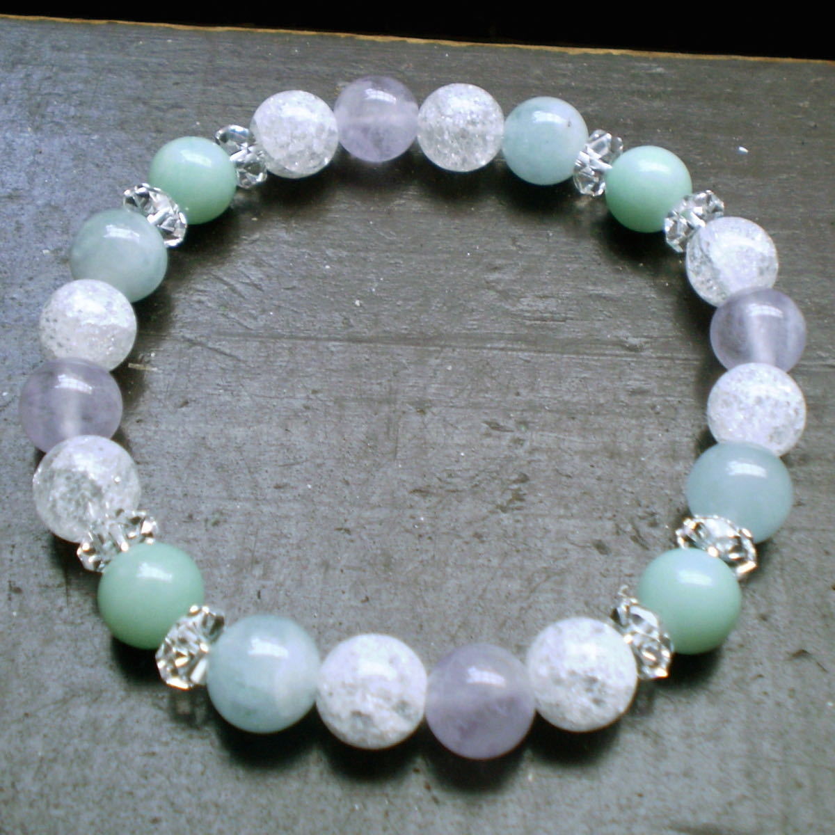 アマゾナイトxアクアマリンxラベンダーアメジストxクラック水晶ブレスレット 天然石 パワーストーン