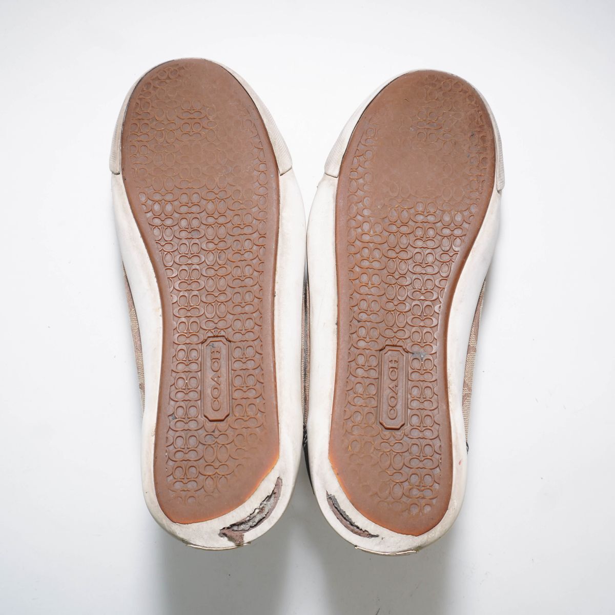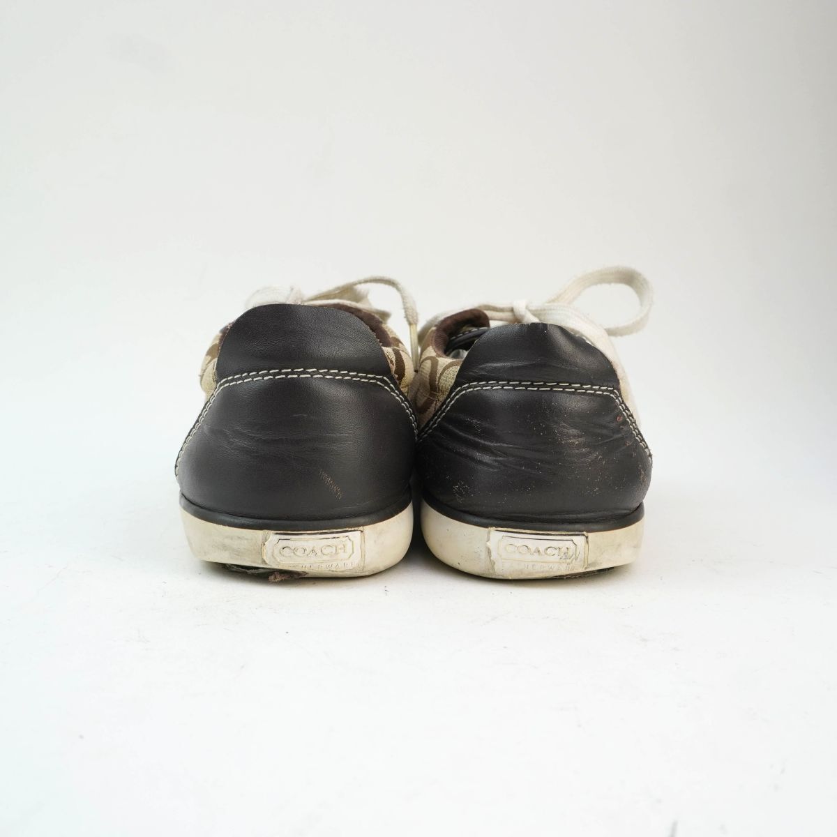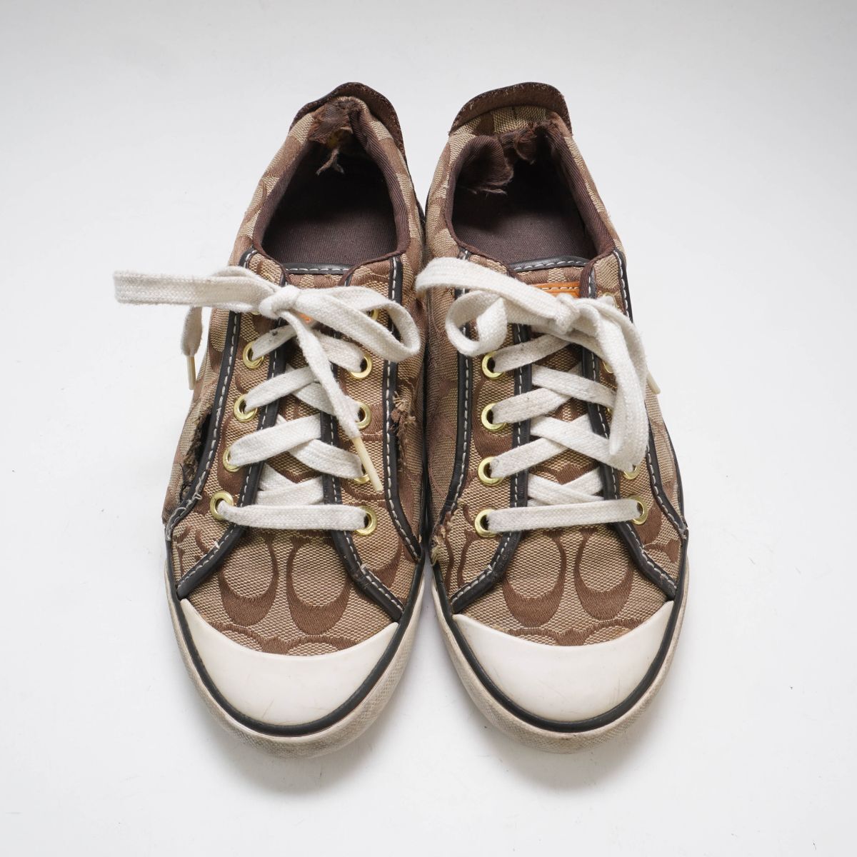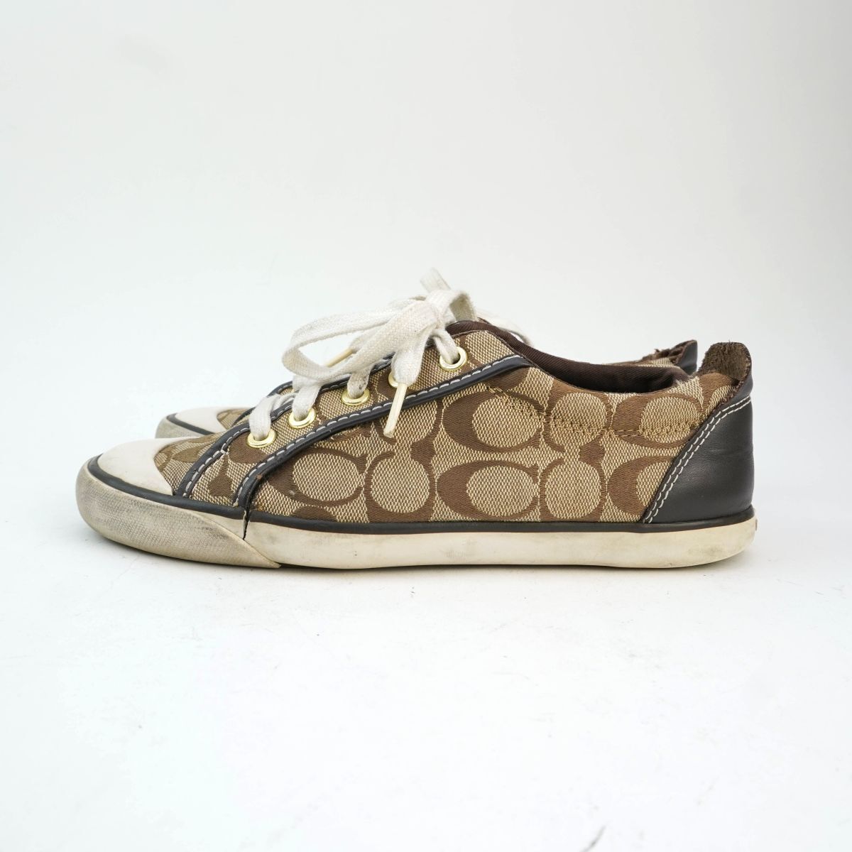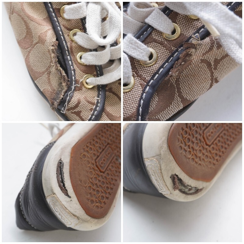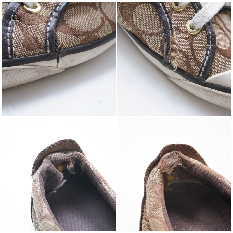 □サイズ:8B 25.0 ※海外表記の場合 上記に掲載している靴のサイズはあくまで目安です。 靴メーカーによって、また同じメーカーの靴であってもデザインやシリーズなどによりサイズは微妙に違ってきます。あくまで参考程度の目安としてご利用下さい。 ヒールの高さ:1.5cm □素材:キャンバス レザー □カラー:ブラウン 白 ホワイト □状態 ソール部分の割れあり。 外側側面、踵内側部分破れあり。画像参照 他、特別目立つ汚れ等は見受けられません。 ■お取り置きについて お取り置きの対応は行なっておりません。 ご了承くださいませ。 ■落札後のご連絡について ご落札後のご質問・値下げ交渉にはお答えできかねます。 ご質問がありましたら入札前にお願いいたします。 商品落札後は期限内にご入金をお願い致します。 ご入金頂けない場合、 通達連絡をさせて頂きます。それでもご連絡が無い場合は「落札者の都合によるキャンセル」にてお取引を中止とさせて頂きますのでご注意下さい。 ※自動的に「非常に悪い」の評価が付きます。 ■発送について 追跡番号が必要な場合は発送前にご連絡ください。 商品発送後に追跡番号を要求された場合、対応出来かねますのでご了承ください。 また、日時指定の対応は出来かねます。その場合も追跡番号の有無をご連絡くださいますようお願いいたします。 ■商品到着後のお問い合わせについて 記載ミス・抜けがあった場合のみ返金を考慮いたします。必ず 評価前に取引ナビよりご連絡ください。 ※お電話での問い合わせ対応はしておりませんのでご了承ください。 ■評価について 評価が不要の場合はこちらへの評価も入れないようお願い致します。 尚、お問い合わせ前や対応前でのいきなりの悪評価はご遠慮下さい。 不備がありましたら必ず事前にお問い合わせをお願い致します。 いきなりの悪評価の場合、同等評価とさせて頂く場合がございます。 ■商品について 新品商品以外はあくまでUSED品となっております。 着用に問題が無いと判断した商品を出品しておりますが、細かな見落としもございますので、神経質な方、商品のクオリティーをお求めの方は入札をお控え下さい。 検品の際にできる限りの商品ケアをさせて頂いておりますが、素材や繊維のニオイが残る場合がございます。 天気の良い日に風通しの良い場所で2日程度天日干しをお試し下さい。 商品到着後のサイズ変更やカラー変更・他商品への変更等、落札者様の都合での商品交換、返品は一切お受けしておりません。 画像参照を確認をしていただき十分ご検討の上にてご入札下さい。(ただし初期不良は除く) ■画像と実物品のイメージ・色について 掲載している画像は撮影用の商品となりますので お届けする商品によっては柄の配置等が微妙に違う場合がございます。 1枚布・生地を裁断して大量生産する場合、生地をカットした部分が 1着・1着それぞれ異なる為、柄の位置ズレが発生致しますので 掲載画像と実物品のイメージが違う場合がございます。 あらかじめご理解とご了承下さいます様、お願い致します。 当店では室内で撮影をしていますが、夜間や室内の暗い場所・蛍光灯の光で商品を見ると 色やイメージが違って見える場合がございます。 また、スマホやPCモニターの解像度・照度設定等の違いや、ブルーライト軽減の効果により出品画像の色と実物品の色合いが違って見える場合がございます。 実物品を撮影した画像を掲載しておりますので「画像と実物品のイメージが違う」「●●色に見える」等のお問い合わせはお受けしておりませんのでご了承下さい。 ■入札について 新規入札の方や評価の悪い方はトラブル防止の為、 入札をお断りする場合がございます。あらかじめご了承下さい。 ※新規の方・評価の悪い方からの不正な迷惑行為が多いため。