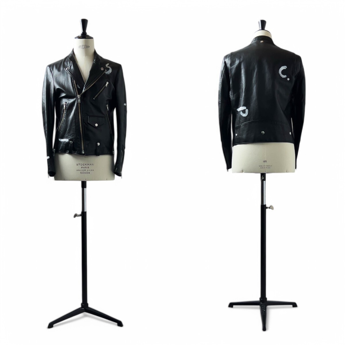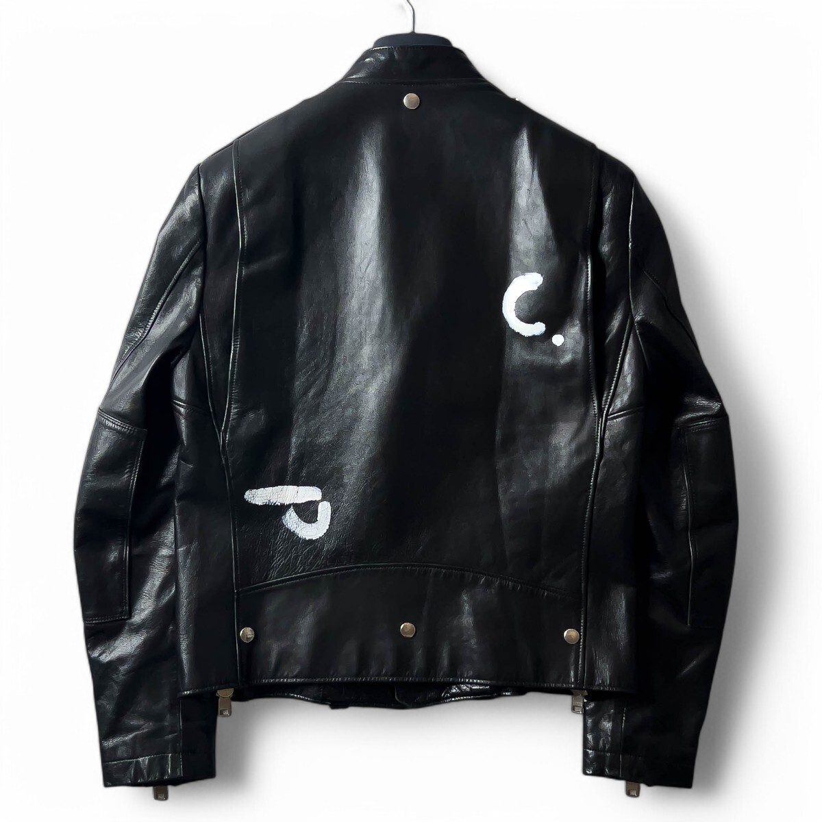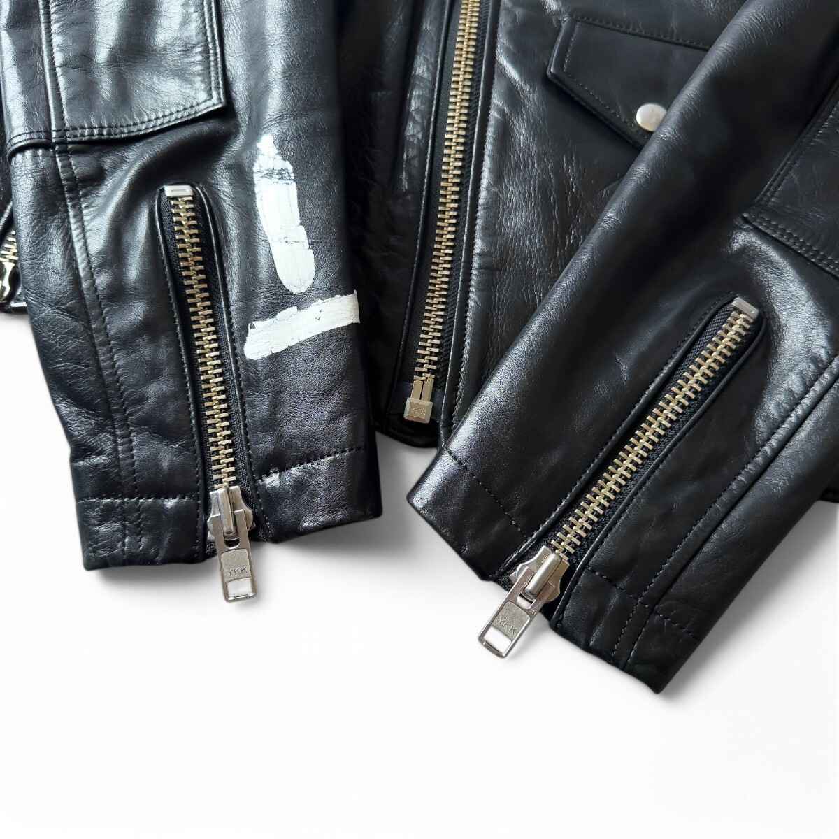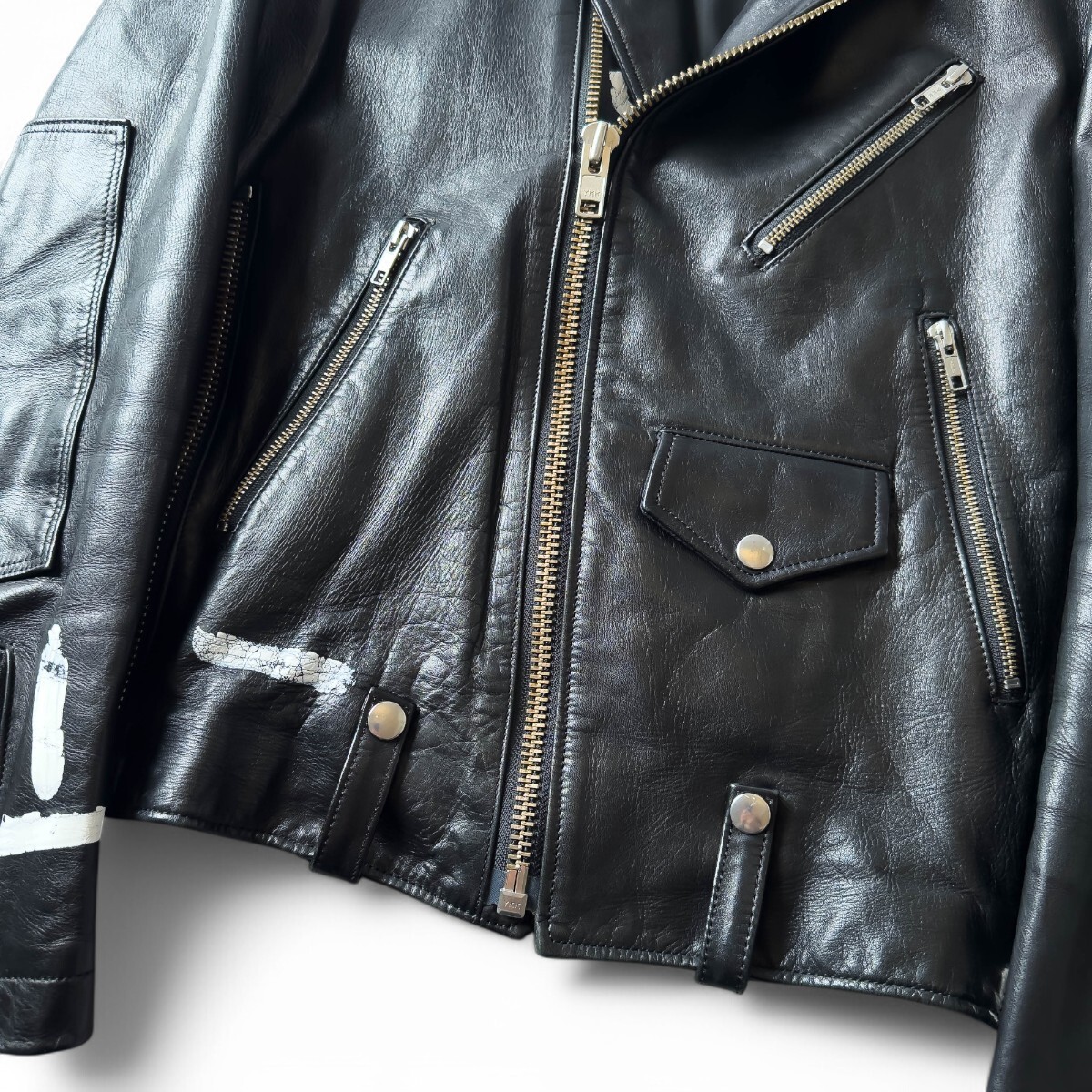 ◆こちらは、ALMOSTBLACKの特別なダブルライダースジャケットです。しなやかでありながら芯の強さを感じさせる馬革(ホースレザー)を使用し、無骨ながらも洗練された印象に仕上げられています。随所に施されたハンドペイントは一点一点異なり、まさに唯一無二のアートピースとも言える仕上がりです。
