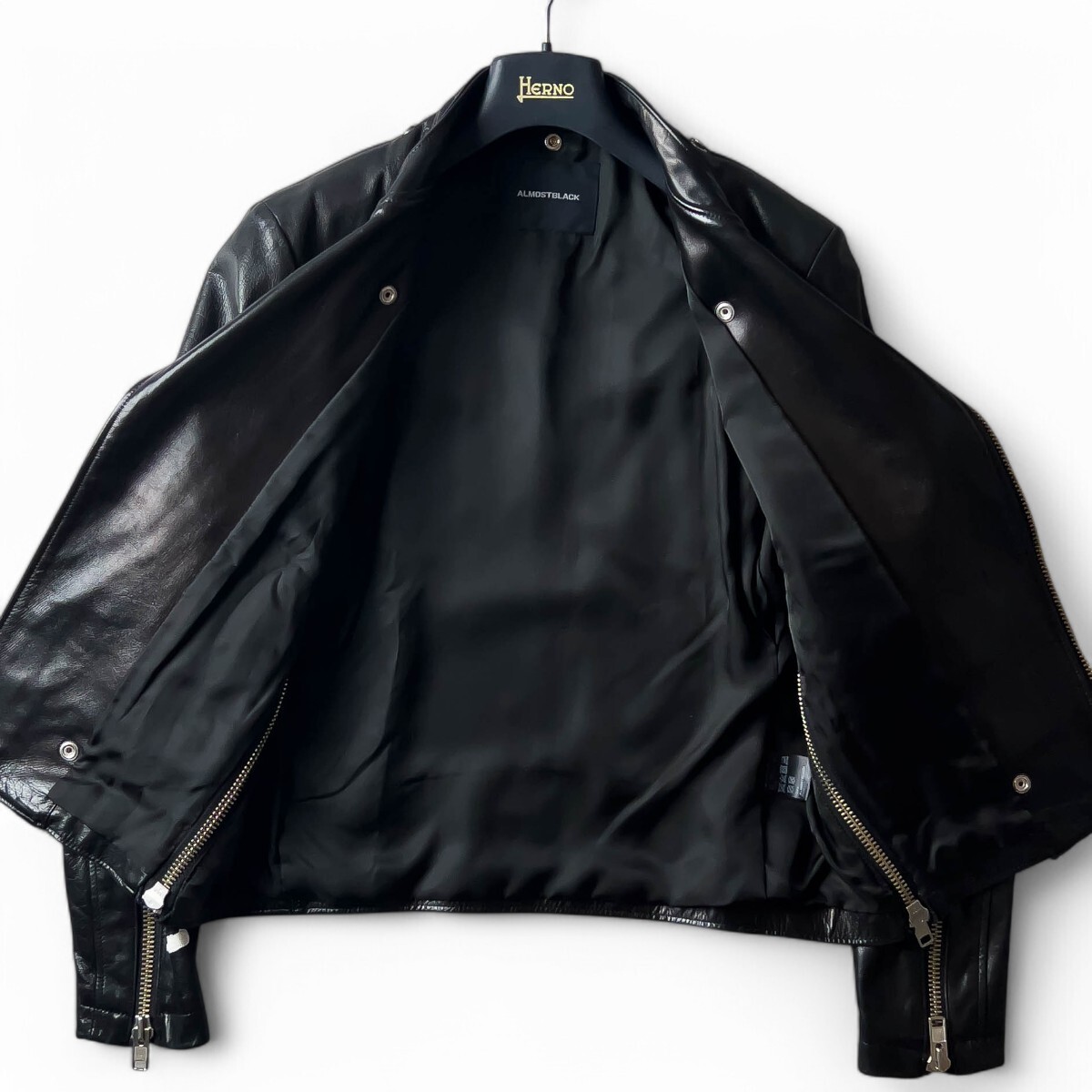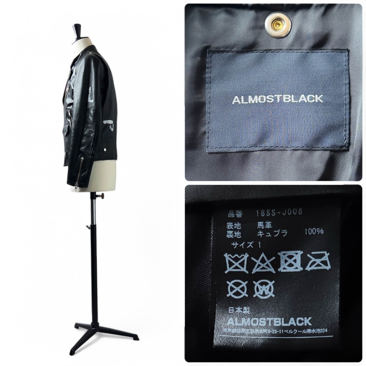 極美品 ALMOSTBLACK オールモストブラック ハンドペイント 馬革 ホース レザー ダブル ライダース ジャケット メンズ 1 (S) 黒 ブラック