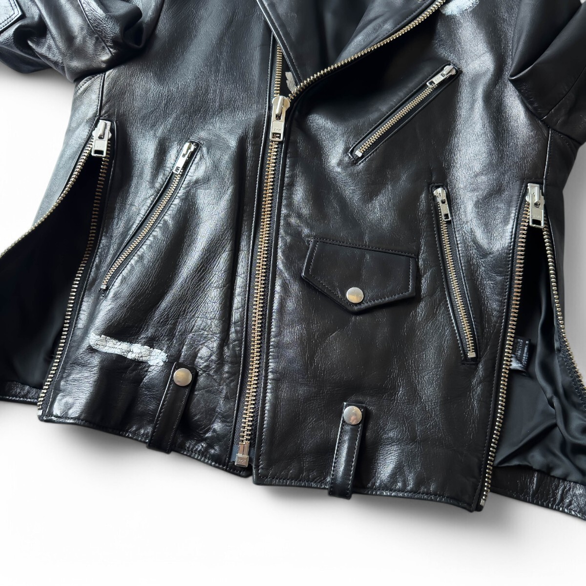 フロントのジップデザインやポケットの配置など、クラシックなライダースのディテールを踏襲しつつも、モダンでアヴァンギャルドな雰囲気を纏った一着。裏地にはキュプラを使用し、快適な着心地を確保しています。ALMOSTBLACKらしい実験的かつ洗練されたデザインが光る、ブランドのファンにはたまらないスペシャルアイテムです。