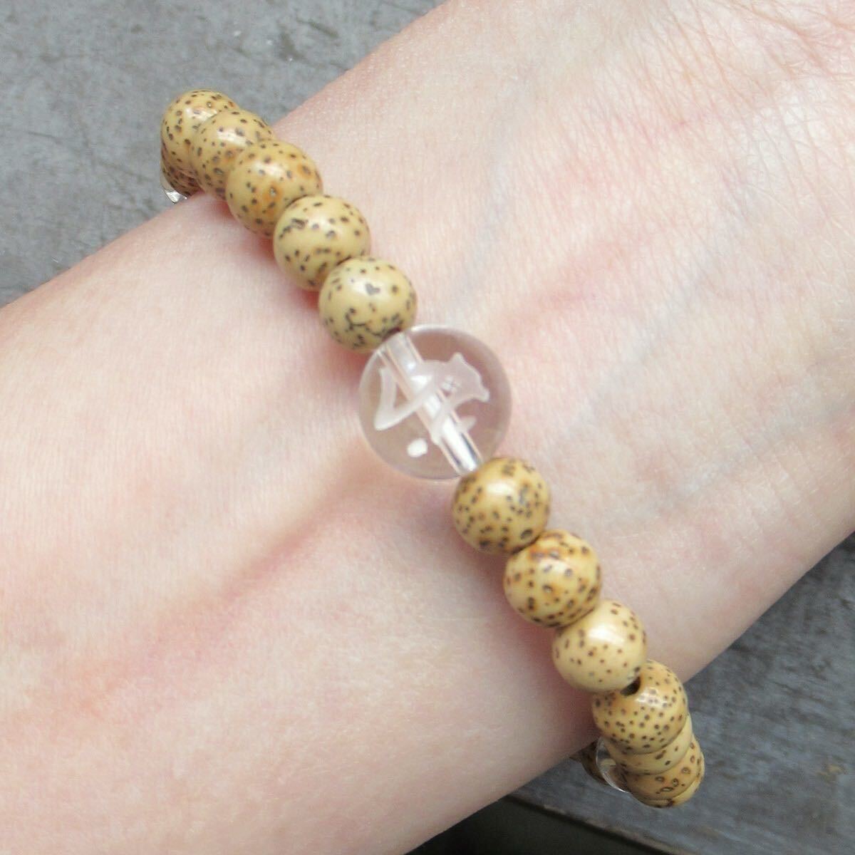 星月菩提樹に干支の守本尊が彫られた水晶を合わせました。