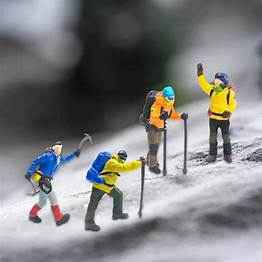 ジオラマ用      1/64スケール登山フィギュア4個セット、手彩色、ABS樹脂