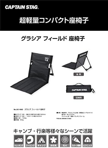 キャプテンスタッグ(CAPTAIN STAG) アウトドア グランドチェア フィールド座椅子 キャンプ用 幅40×奥行68×高さ39cm 重量約530g 収納バッグ付き ポリエステル ブラック グラシア UC-1803