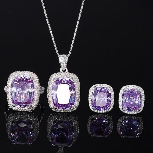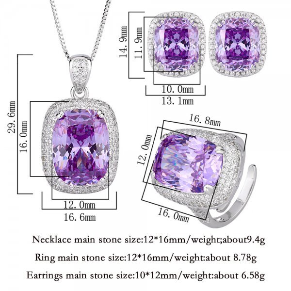 女性用アメジストジュエリーセット (ネックレス、リング、ピアス)、レディースアクセサリー,ラグジュアリー,12x16mm