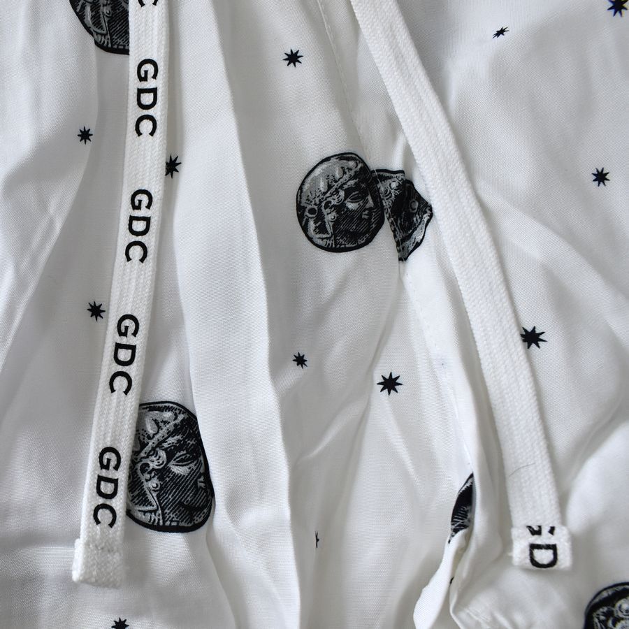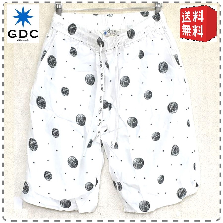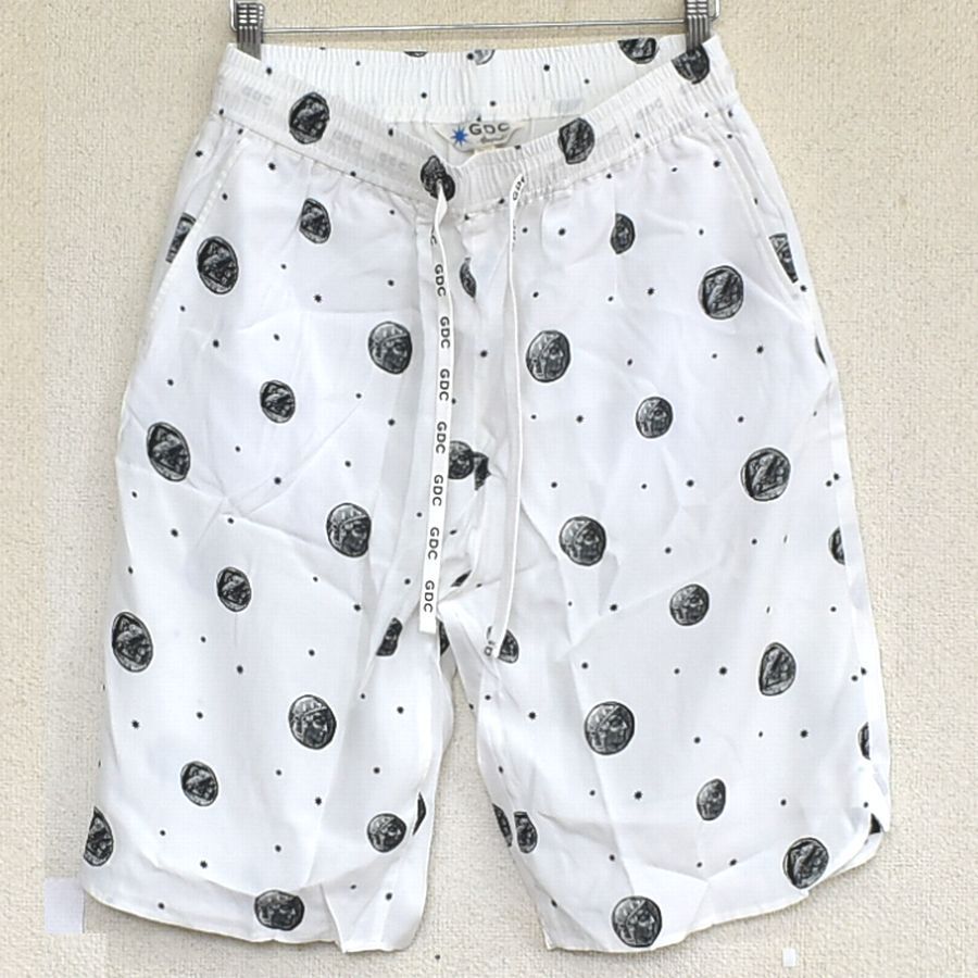 メンズLサイズ 白 日本製 古代ギリシャ ドラクマ銀貨 ショートパンツ GDC ジーディーシー ウエストゴム ユニセックス 全国送料無料 A482