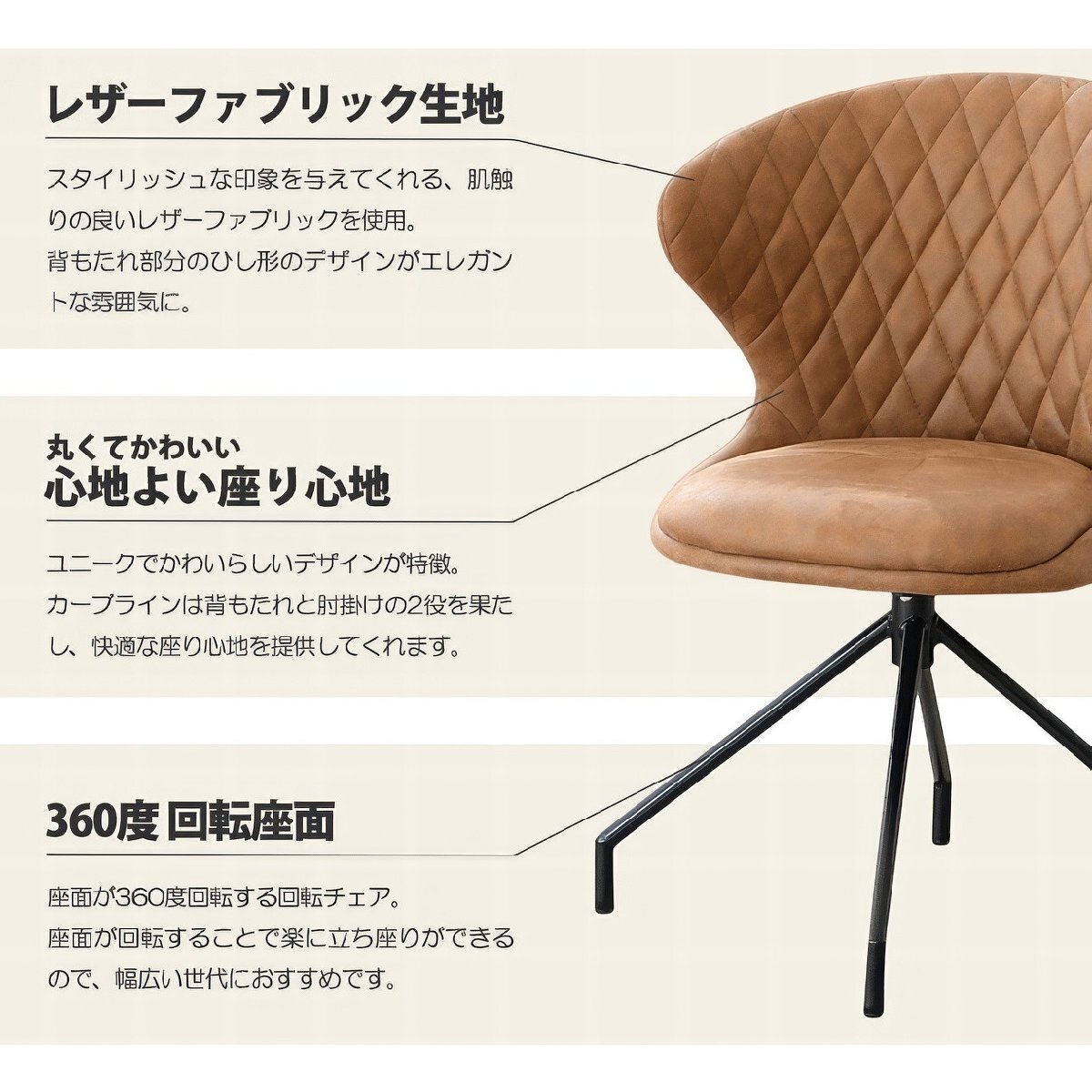 回転チェア ダイニングチェア 360度 椅子 回転 イス 幅55cm ダイヤステッチ 肘置き アームレスト ダーク