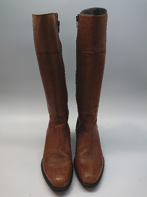 ■ ◎ FAUVE ラウンドトゥ ジップアップ ロング ロングブーツ サイズ23.0 ブラウン レディース E