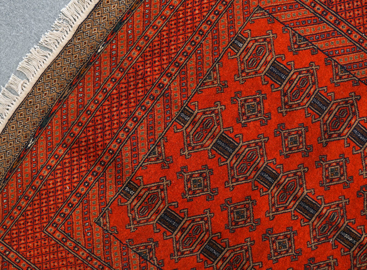 トルクメン絨毯(Turkmen carpet)は、中央アジアのトルクメニスタンにルーツを持つ伝統的な手織りの絨毯です。これらの絨毯は非常に美しく、精巧で、何世代にもわたって作り続けられてきました。トルクメン絨毯は、主に以下の特徴を持っています。