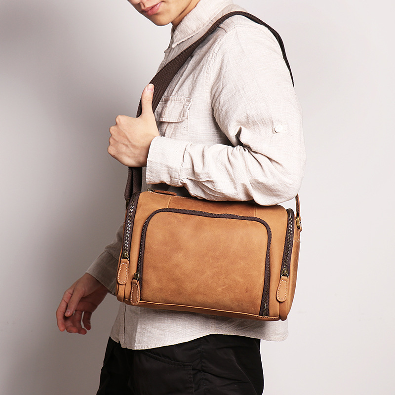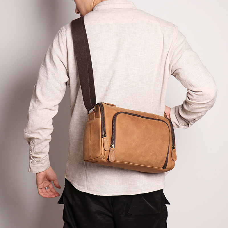 メンズ ショルダーバッグ 本革 ミニショルダーバッグ 肩掛け 大容量 カジュアルバッグ 斜め掛け 通勤 カジュアル 自転車 多用途 ブラウン