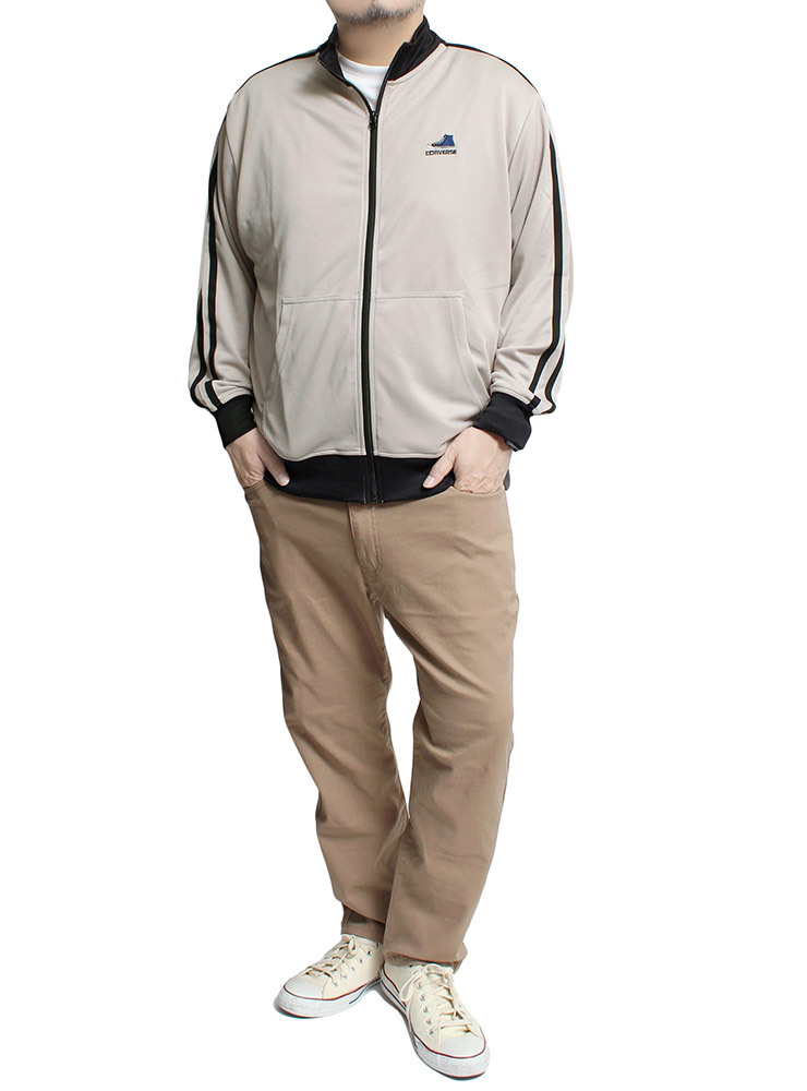 商品名 | 【新品】 3L ベージュ コンバース(CONVERSE) スタンド ブルゾン メンズ 大きいサイズ ストレッチ ロゴ プリント ジップアップ ジャージ ジャケット |