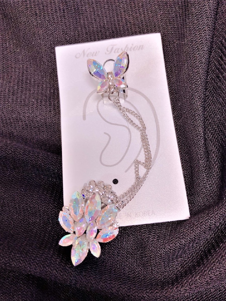 ゆらり キラキラ イヤーカフ 蝶とお花