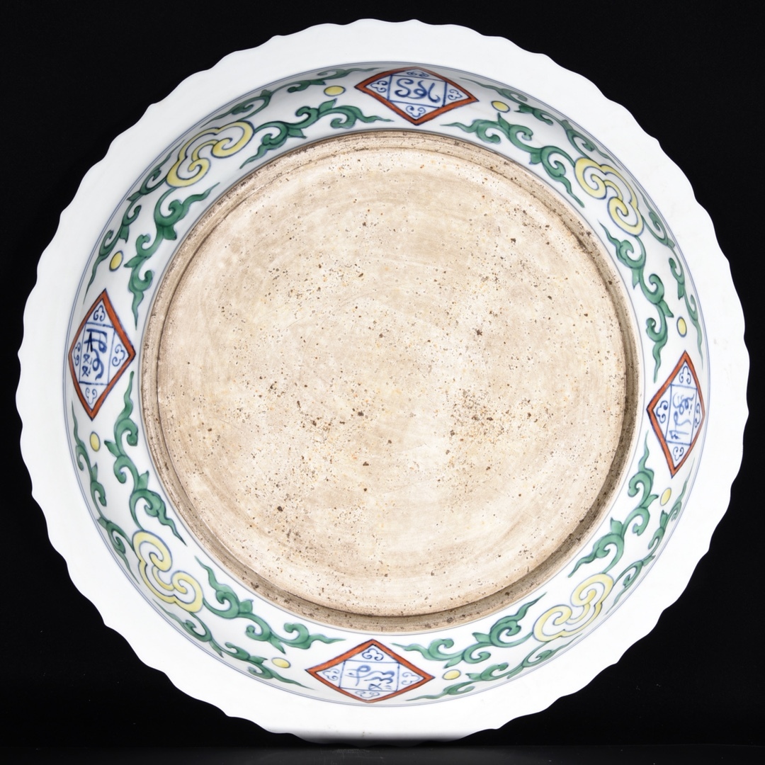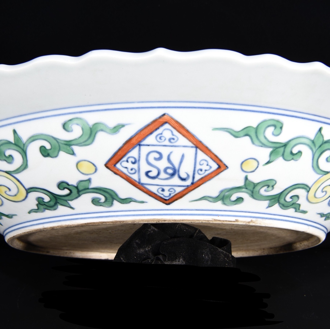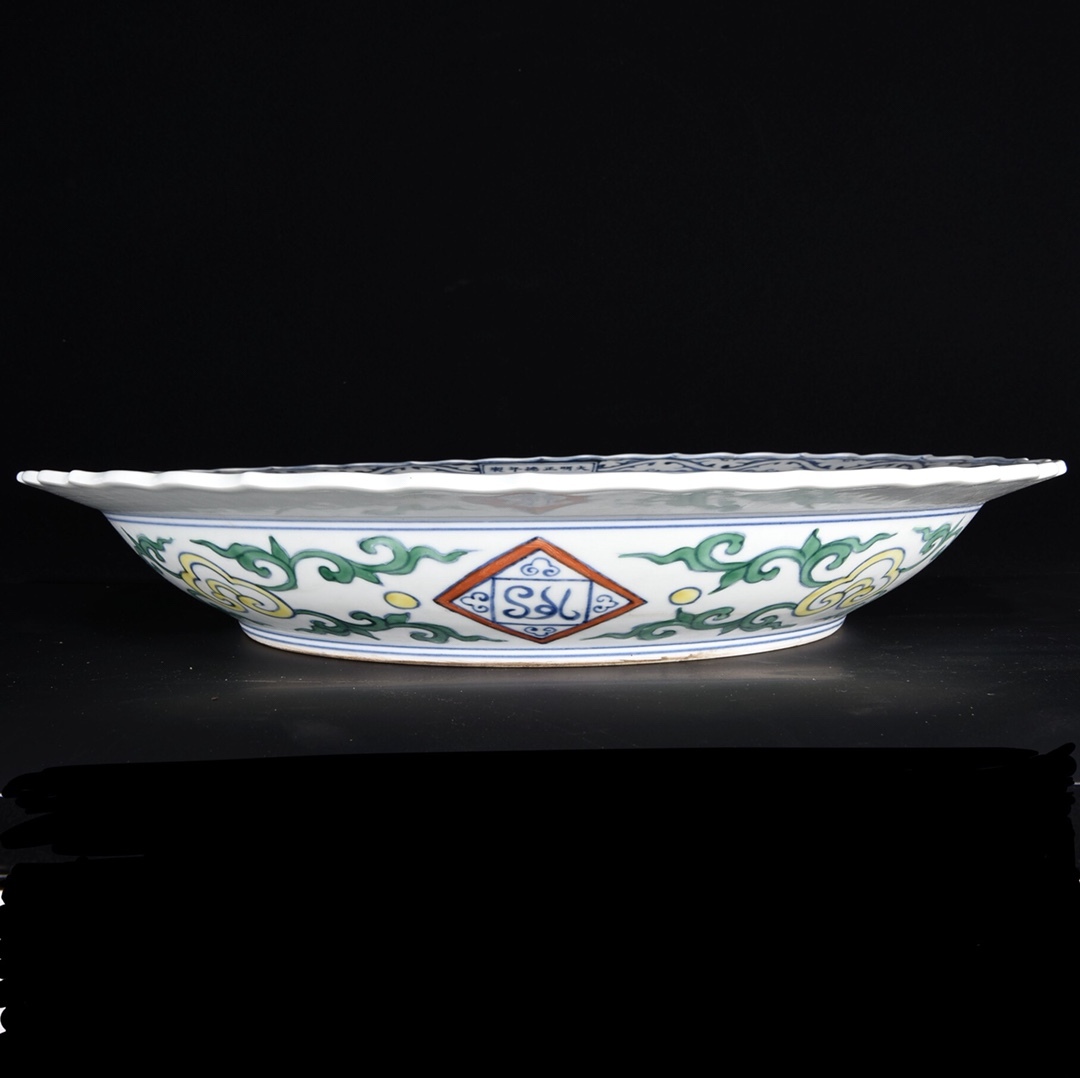 『明・正德年製款・古陶磁器・大明赤絵・青花五彩魚藻紋・盤・賞盤』極細工・時代物・東洋彫刻・古賞物・中国古玩・中国古美術