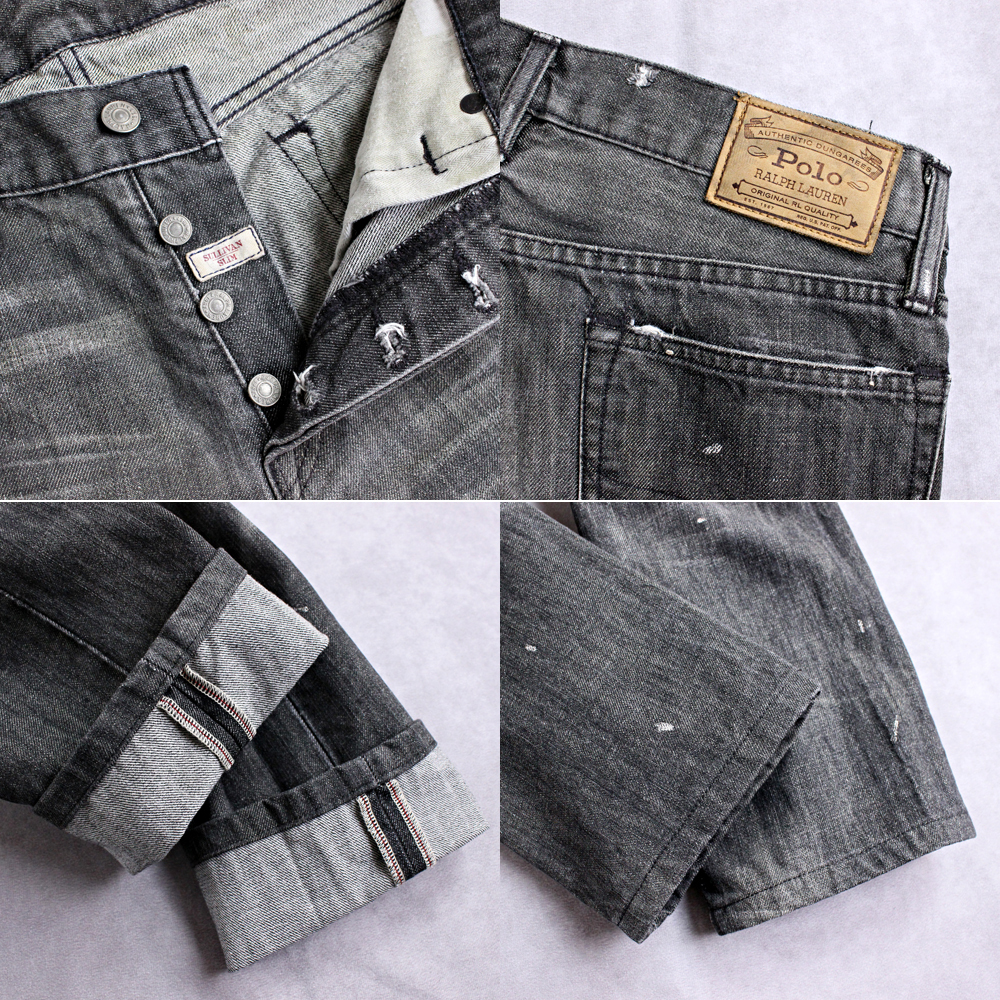 【POLO RALPH LAUREN】SULLIVAN SLIM ダメージ&リペア スリムシルエット デニムパンツ ブラックデニム W30(ウエスト86cm)ラルフローレン