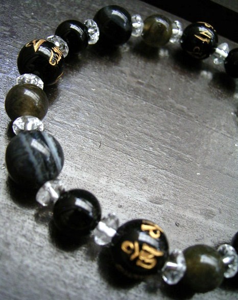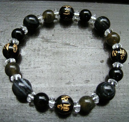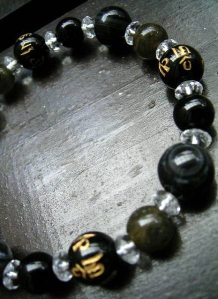 観音真言彫りオニキスx天眼石xラブラドライトブレスレット 天然石 パワーストーン