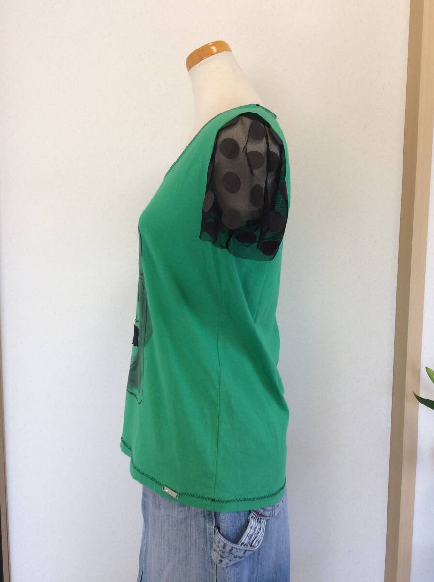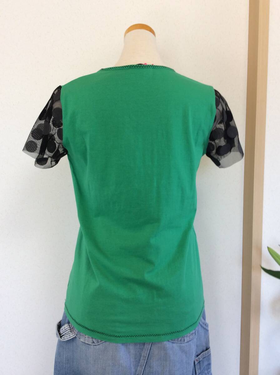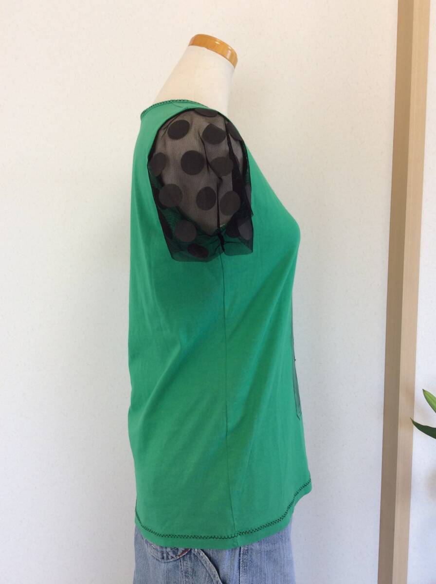 ブランド、メーカー:ロリタス&ロロス グリーン×黒ドットチュール ラインストーン付き 半袖トップス