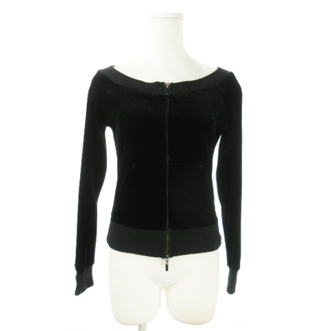 フォクシーニューヨーク FOXEY NEW YORK ベロアジャケット ブルゾン ダブルジップ ストレッチ 38 S 黒 ブラック /AO10 ■GY19