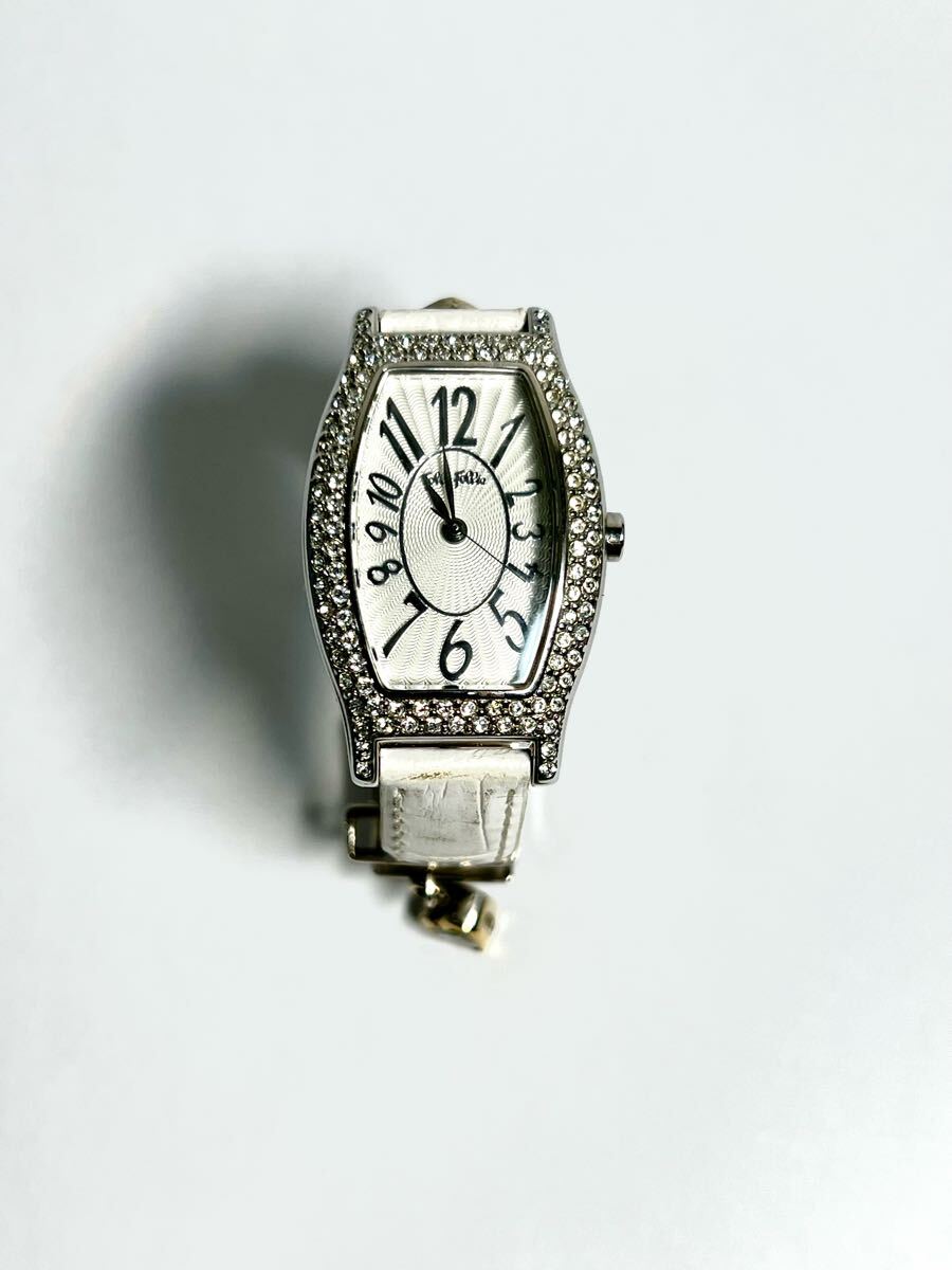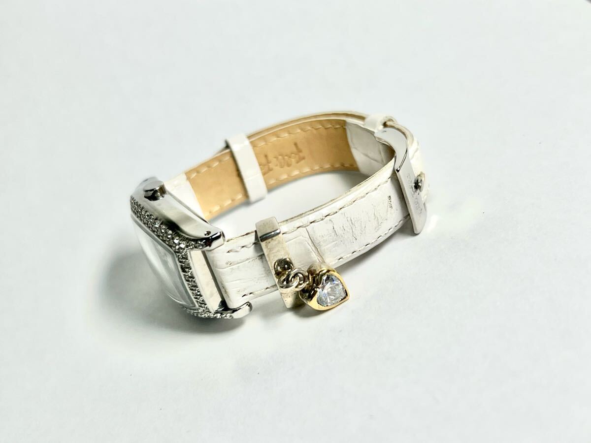 純正ベルトですが、白色なので所々少し汚れが目立ちます。ファッションや季節に合わせて別の色の革ベルトに付け替えてオールシーズン楽しめるのが革ベルトのいい所ですので、是非ベルト交換をしてアクセサリー感覚でお楽しみください(*^^*)
