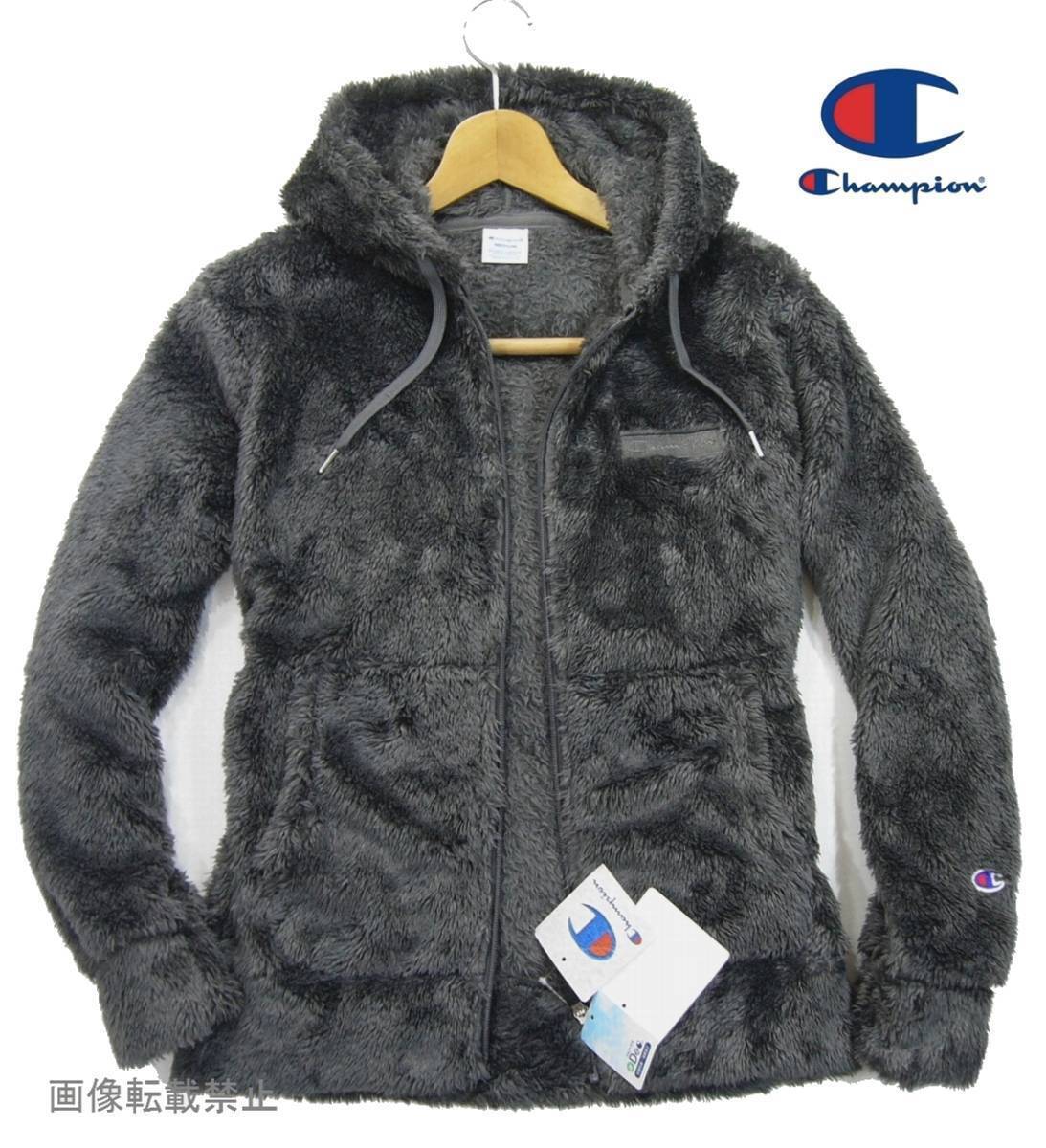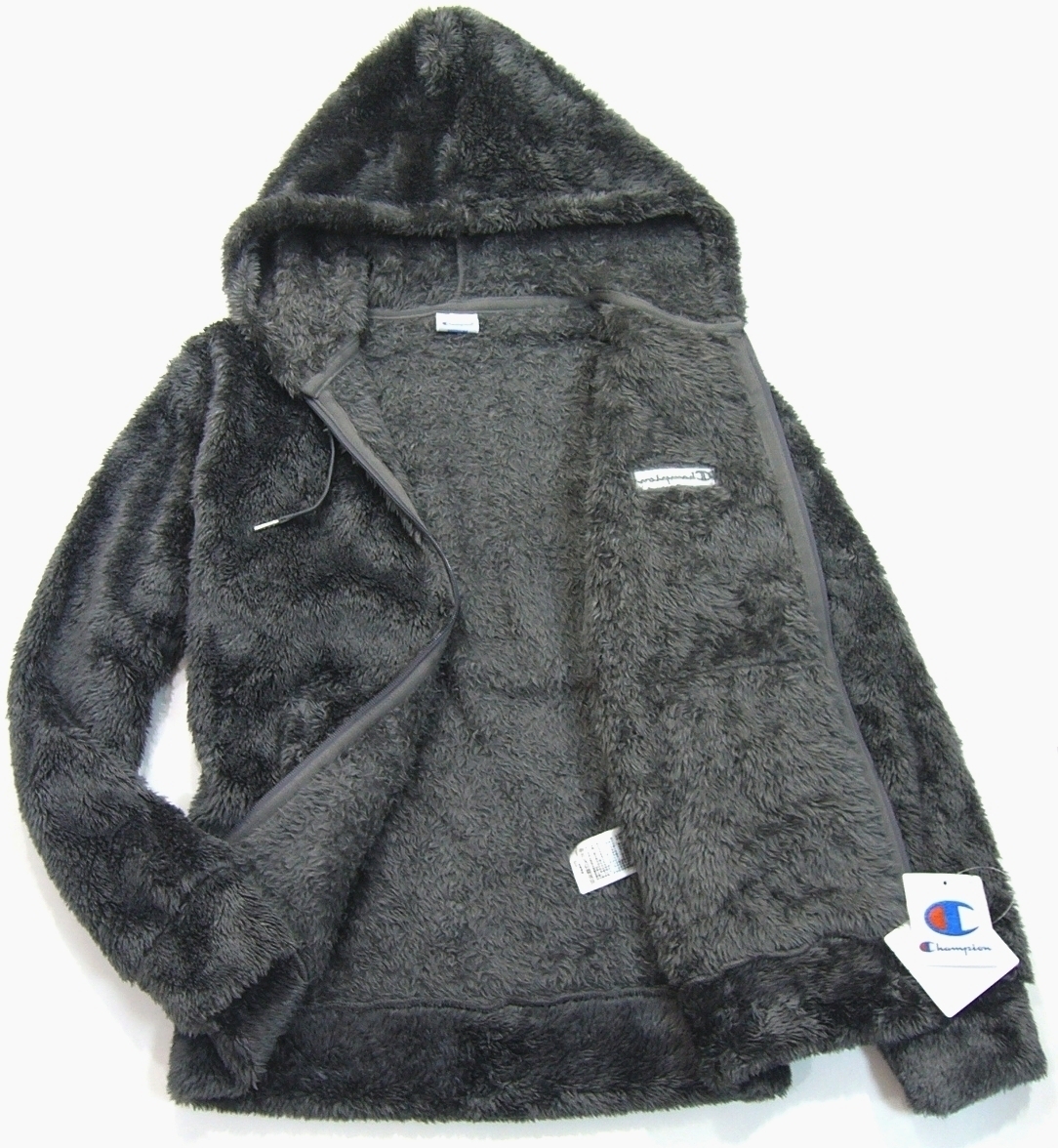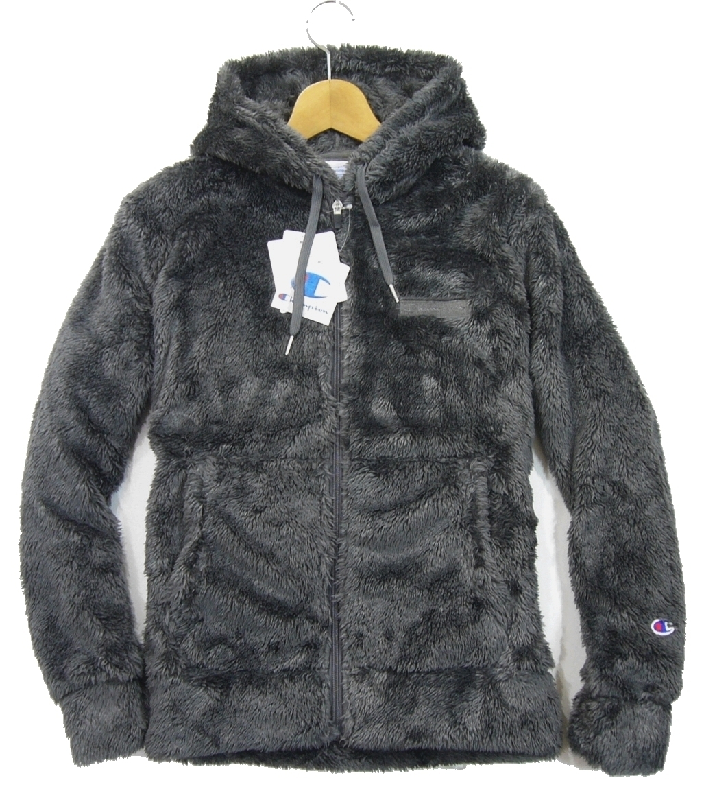 新品 チャンピオン 袖ロゴ シェルパ フリースジャケット L チャコールグレー 肉厚 ボア フーデッド ブルゾン Champion