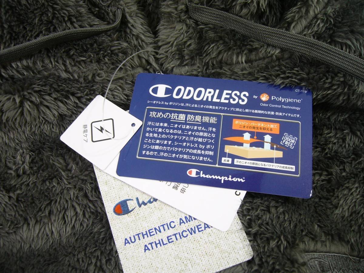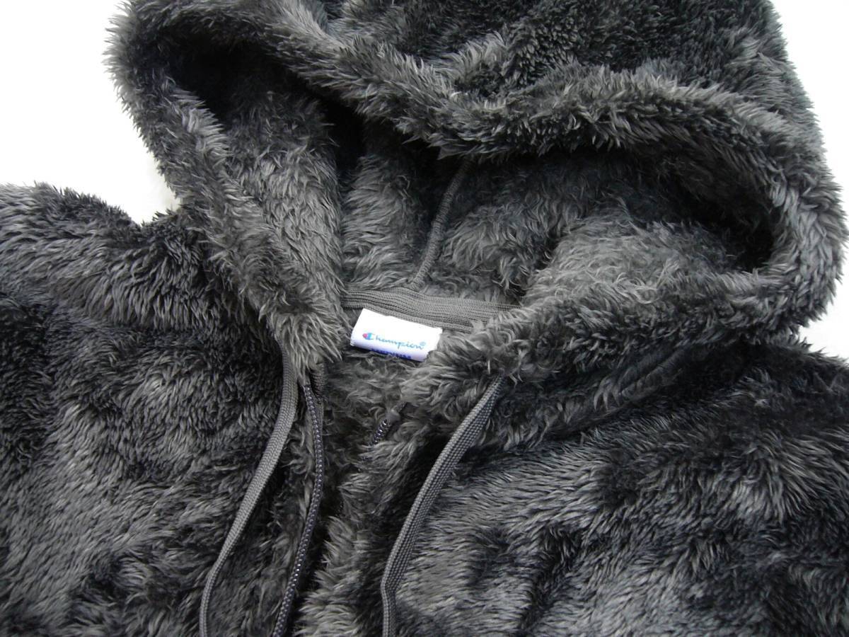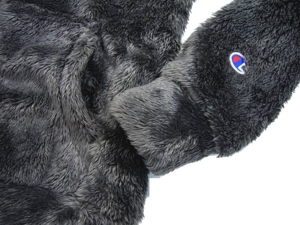 新品 チャンピオン 袖ロゴ シェルパ フリースジャケット L チャコールグレー 肉厚 ボア フーデッド ブルゾン Champion