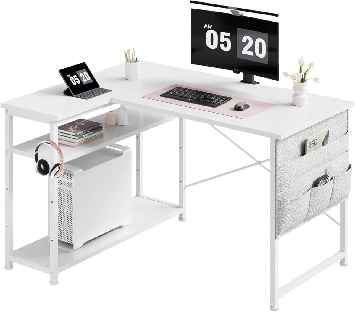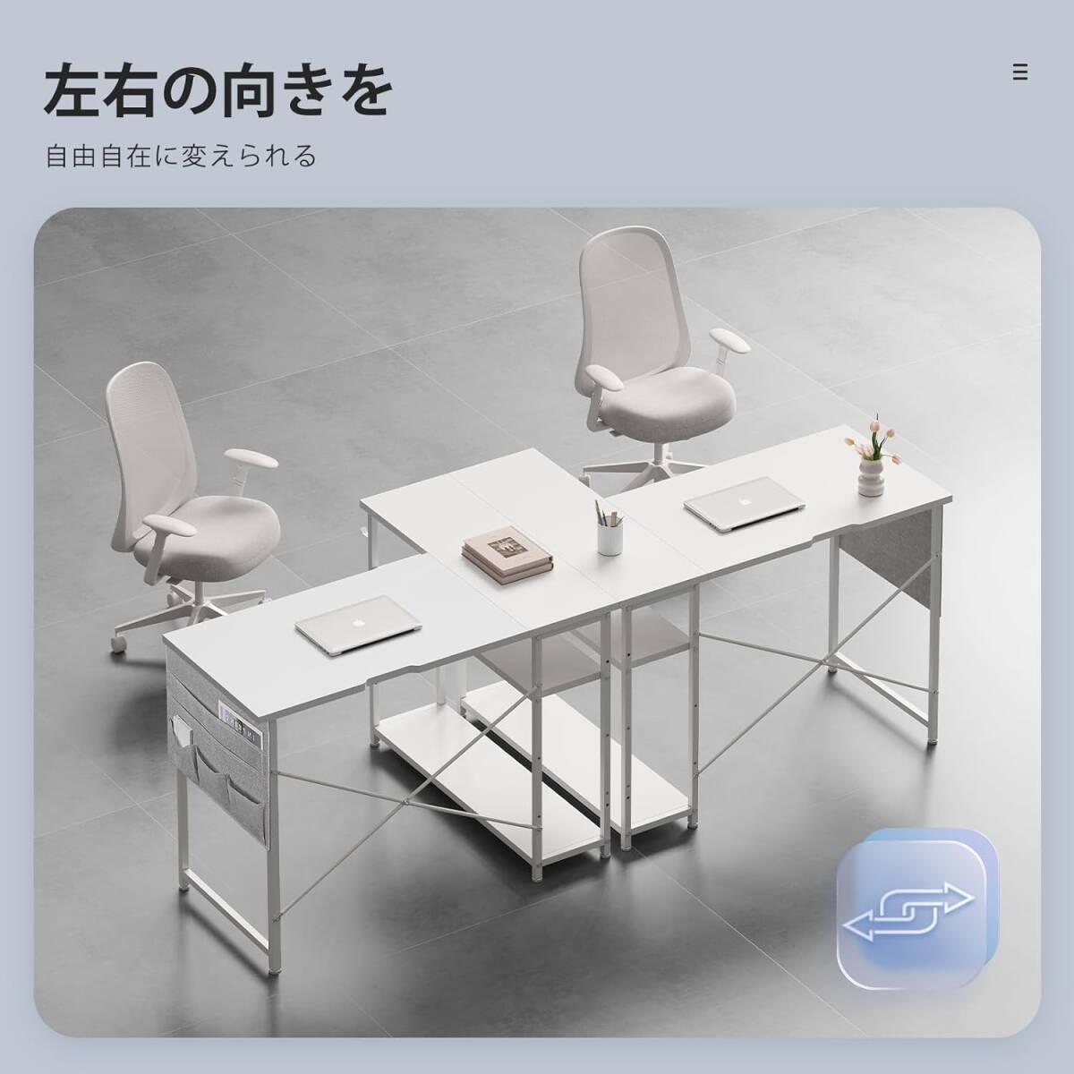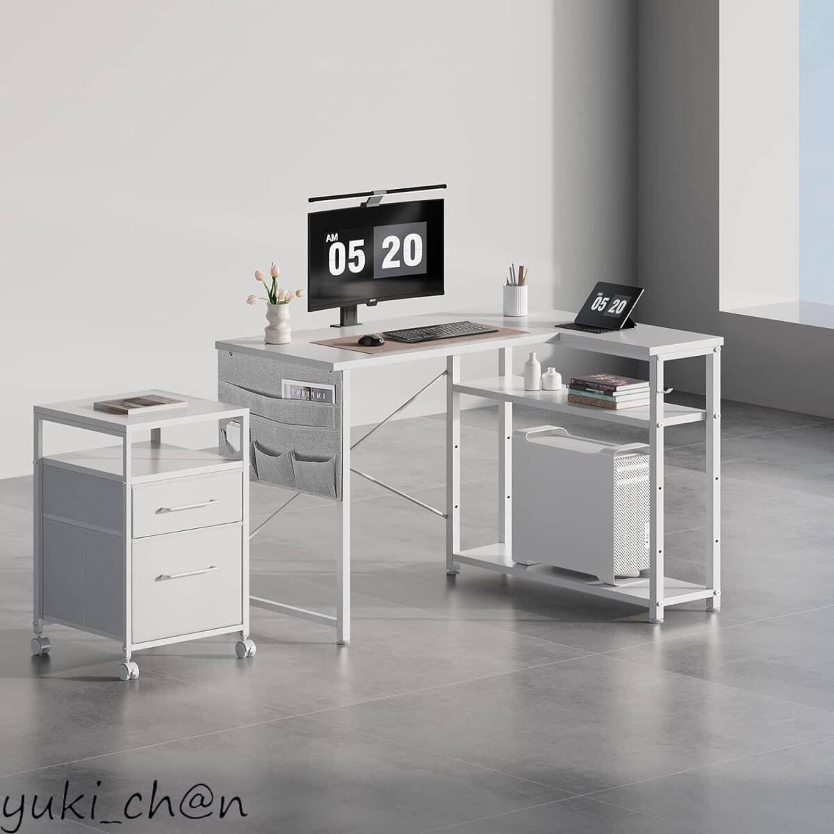 l字デスク 机 pcデスク 学習机 勉強机 右棚左棚 幅99cm desk 棚板高さ調節可能 作業机 L字型 ラック付き ホワイト
