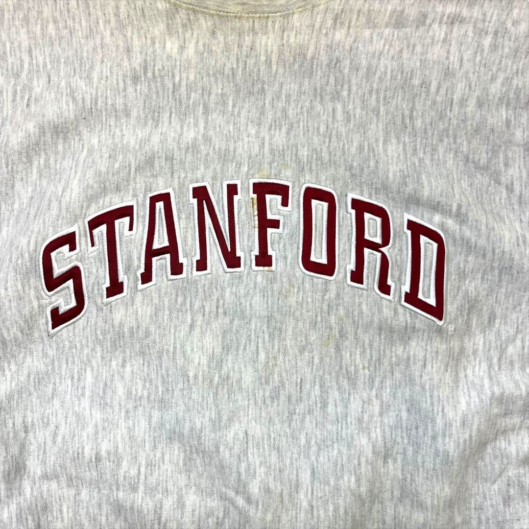 90s Vintage MVSPORT STANFORD カレッジ ロゴ スウェット トレーナー グレー 古着 メンズ M リバースウィーブタイプ スエット ヴィンテージ ktus0386