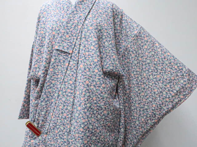 | リサイクル商品のため、衿裏しみと表所々小さなしみがございますが着用可能なお品です。 地色は 灰です。 1枚目の画像が近いお色かと思われます。 素材は正絹です。 |