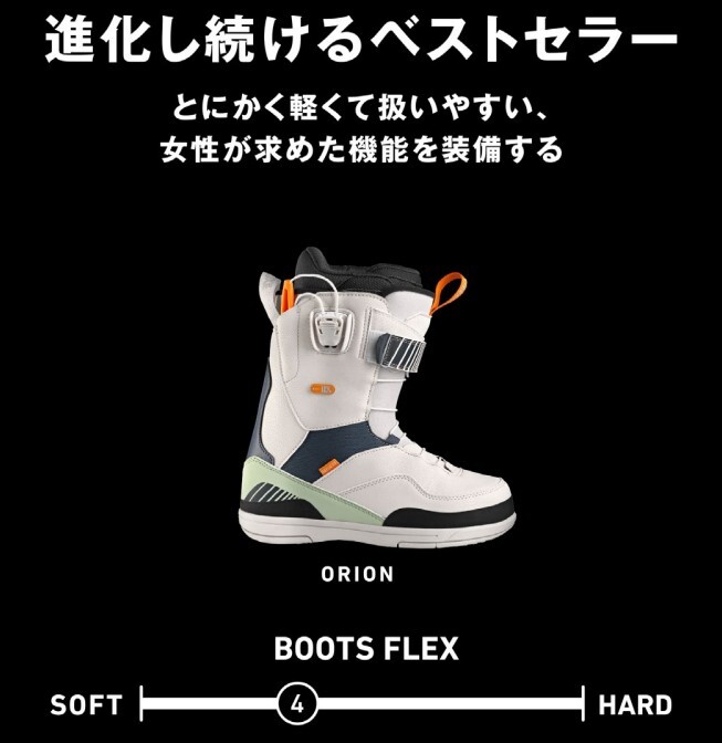ソールは柔軟で薄いスケートソールを搭載する事で雪面情報をいち早くキャッチし、転倒を防止してくれる。