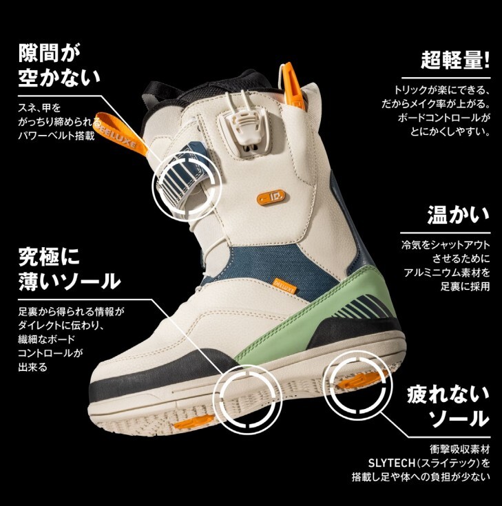 履いていることを忘れてしまうようなフィット感と軽さ。大人気モデルID LARAをベースに理想的なフィット感を求めて、カカトを個別で締める事の出来るC3システムを採用。