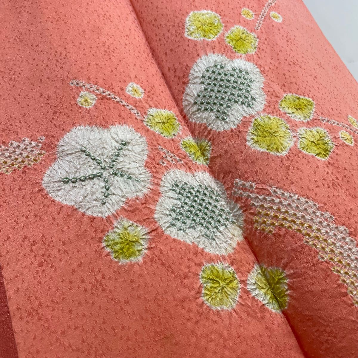 ・絞り染めの梅の花がとても素敵な付け下げのお着物です。 ・右前袖、後身頃にうっすらとシミがあります。袖裏側に茶色いシミがあります。(写真9枚目) ※たたみジワあり ・まだまだ着用していただけますので、おすすめのお着物です。 ・お安く出品致しますので、是非この機会にいかがでしょうか。 |