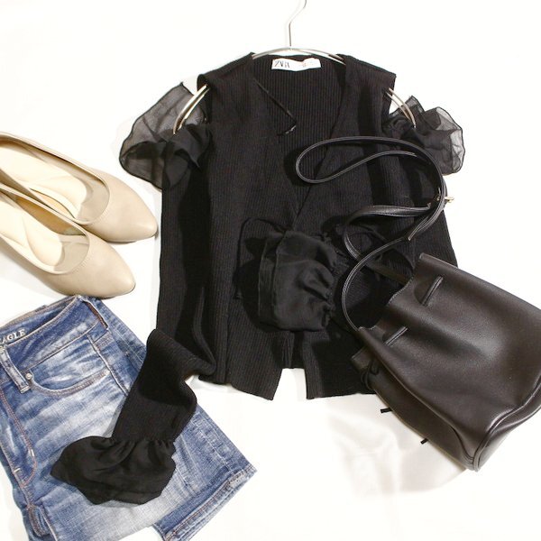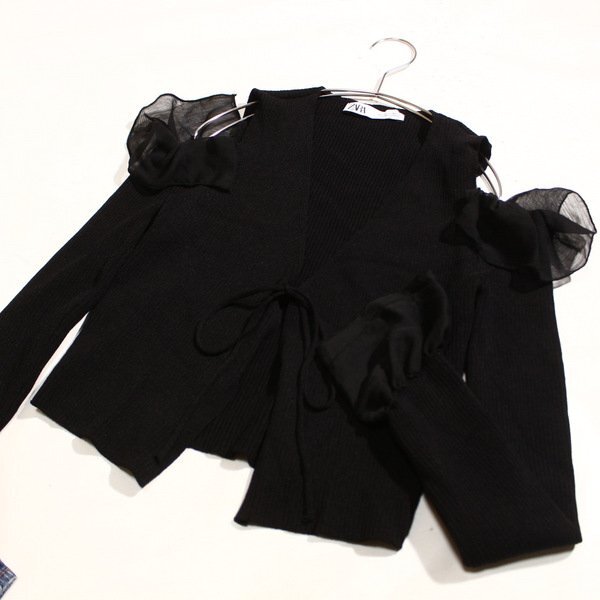 美品 ザラ ZARA 可愛い カットショルダー カーディガン S 春 夏 25C02