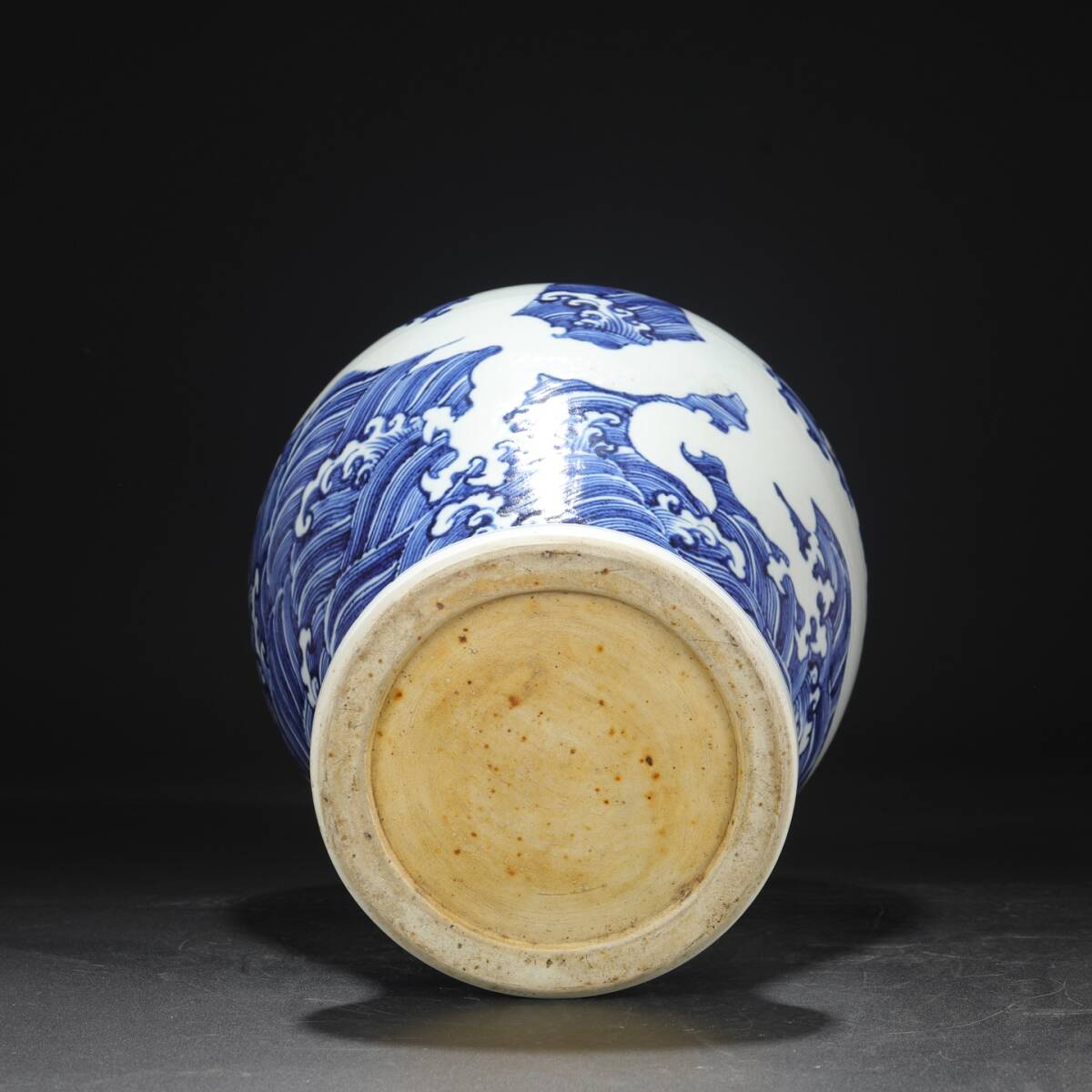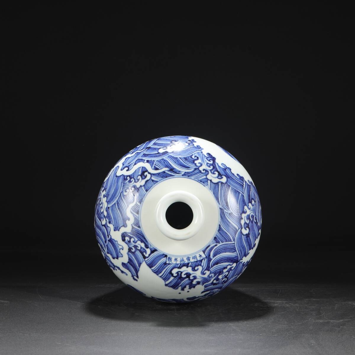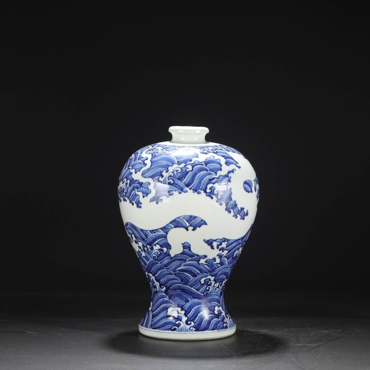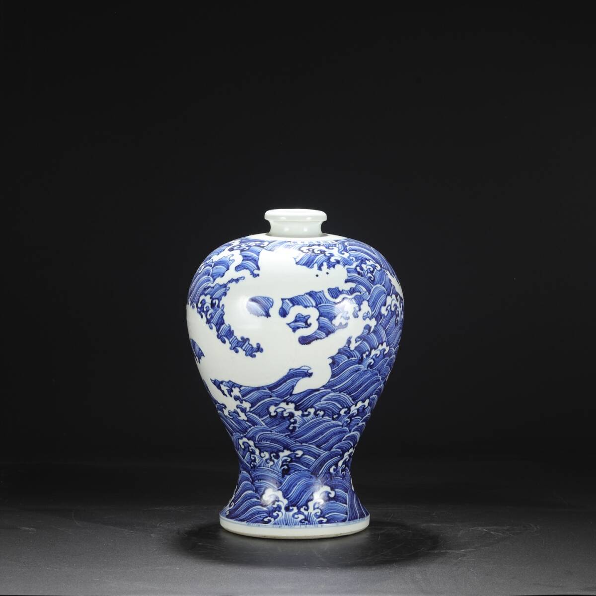 明時代 宣徳 青花 留白剔刻海水龍文大梅瓶 唐物 箱付き 陶磁器 中国美術 古美術 置物 高さ40.3cm 口径8cm 胴径27cm RG268