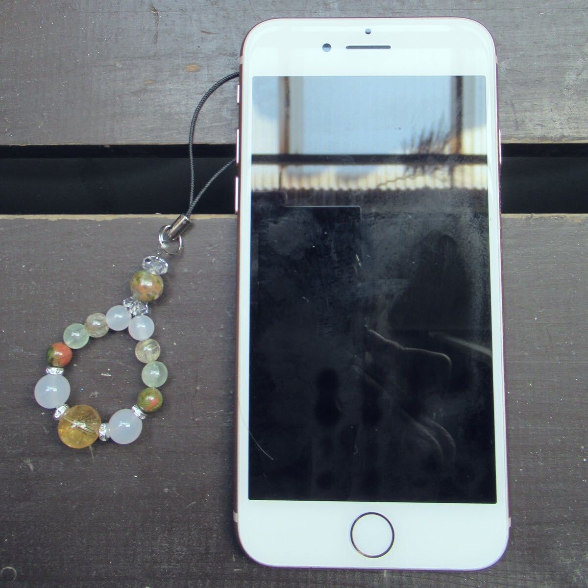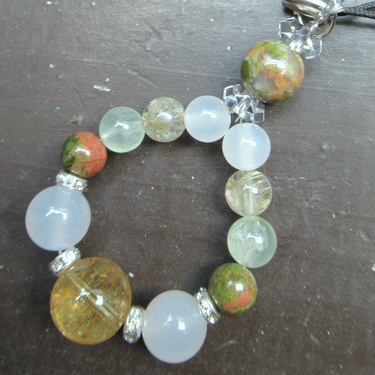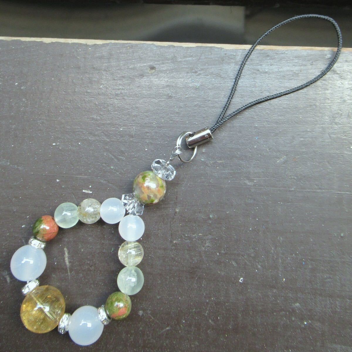 シトリンxホワイトカルセドニーxユナカイトストラップ 天然石 パワーストーン