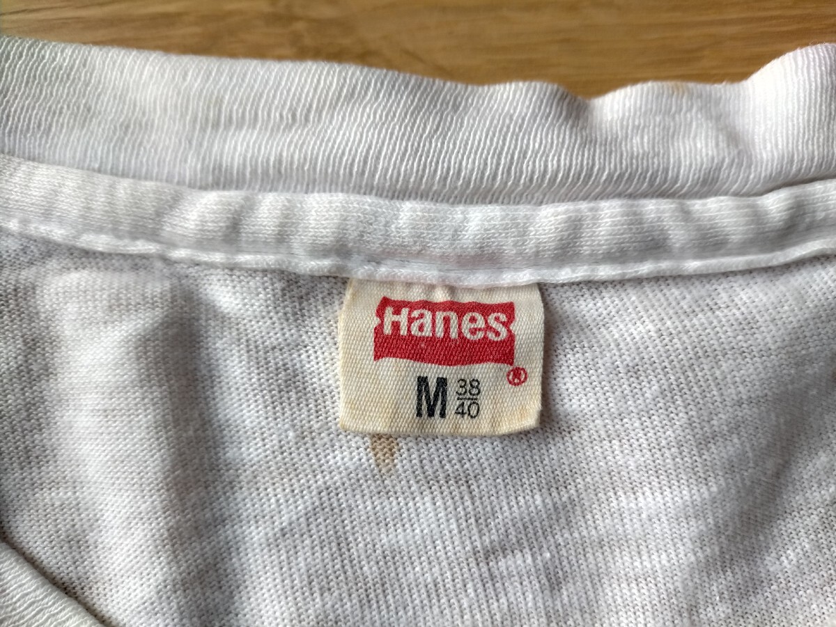 ★’70年代Hanes★送料230円★ヴィンテージTシャツ サイズM★ MADE IN U.S.A. ヘインズ 白色 イラスト ビンテージ 古着 レトロ レア