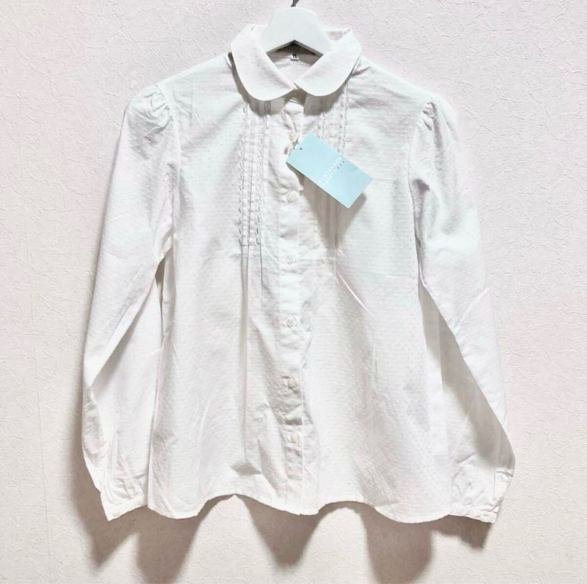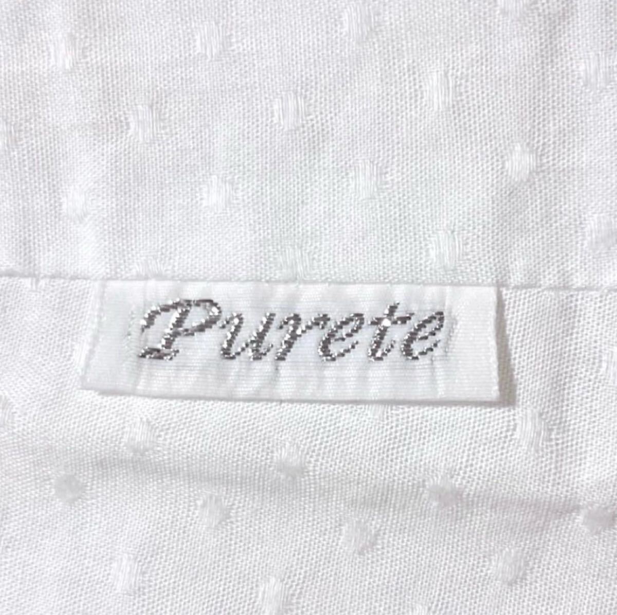 どうしてもカメラが自動調整してしまい実物に近いお色に撮影できていないように思いますが、綿100%の一般的な白色です。