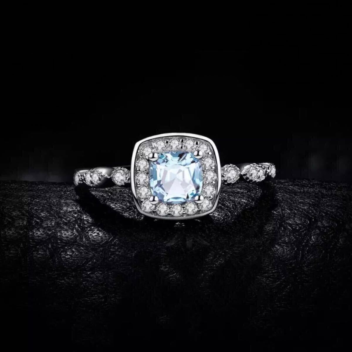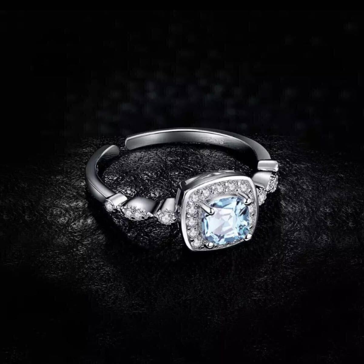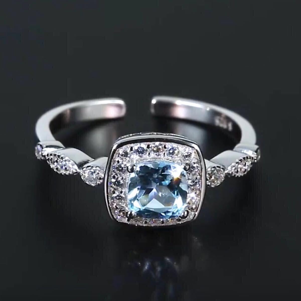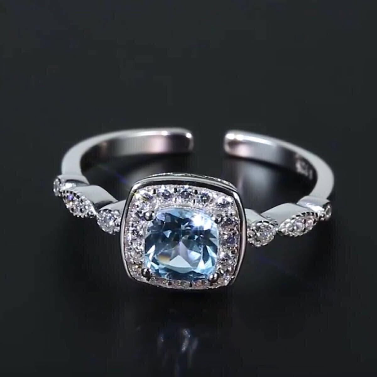 天然石トパーズと周囲を囲むCZダイヤモンドが華やかなシルバーリングです。爽やかなブルーカラーが上品なお品です。